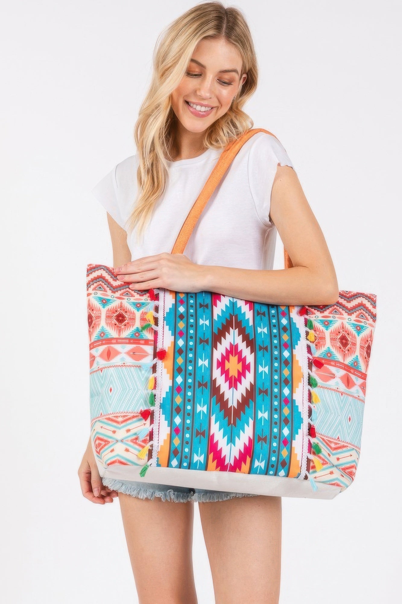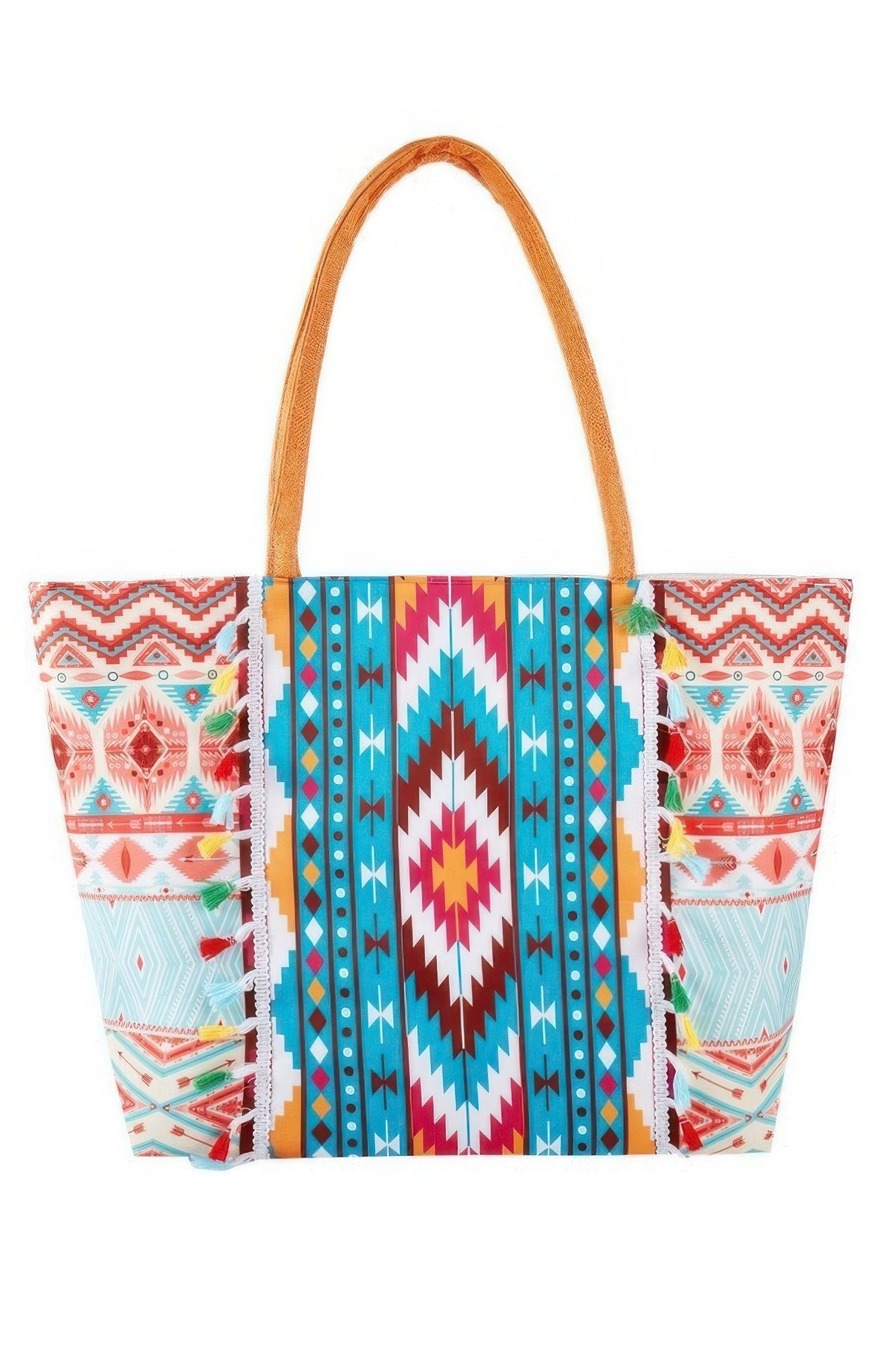 Boho Style Aztec Pattern Tassel Summer Tote Bag