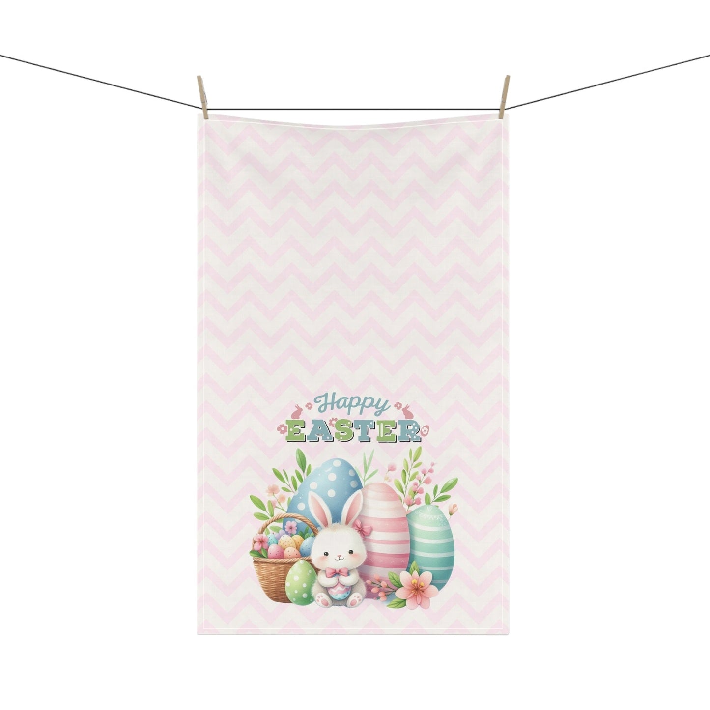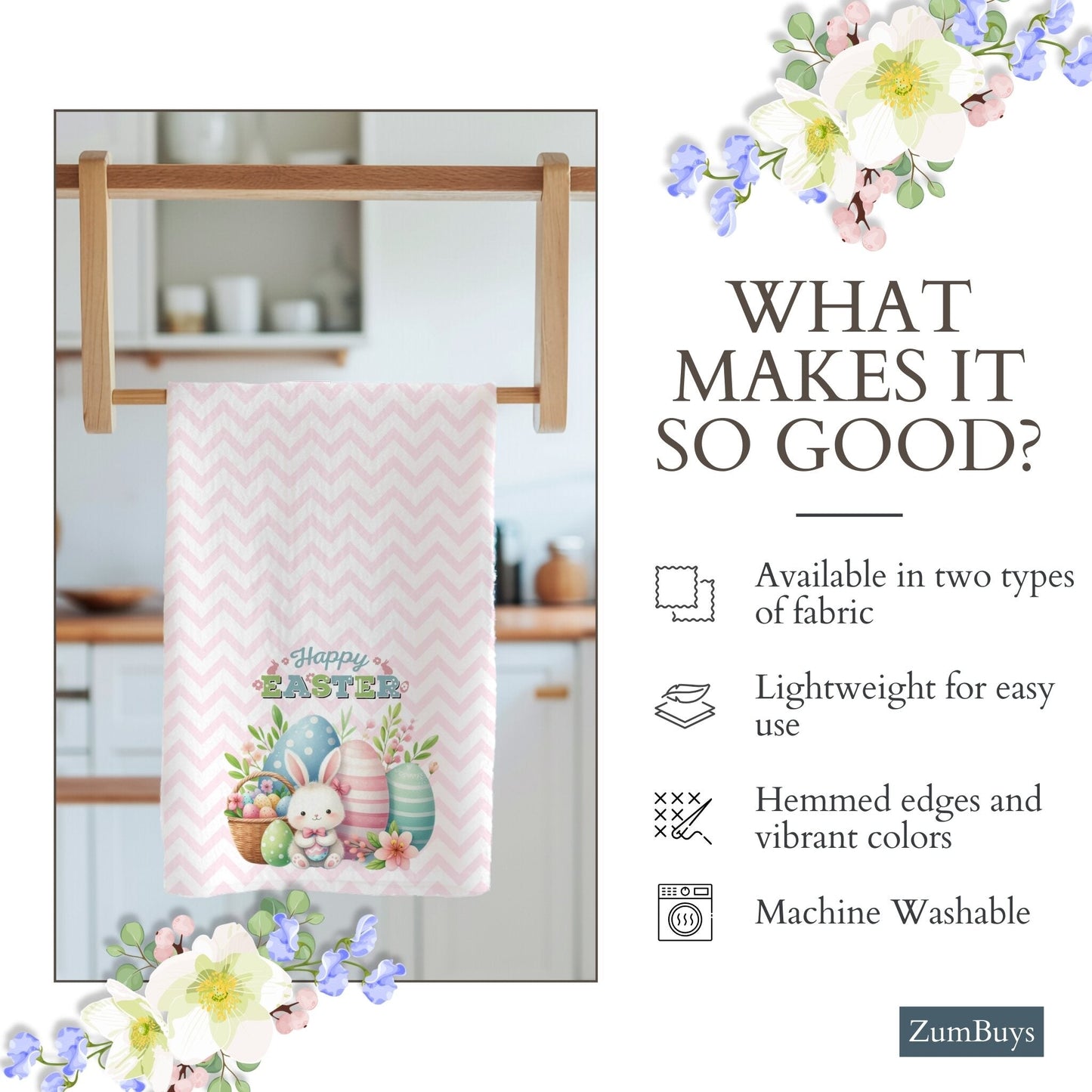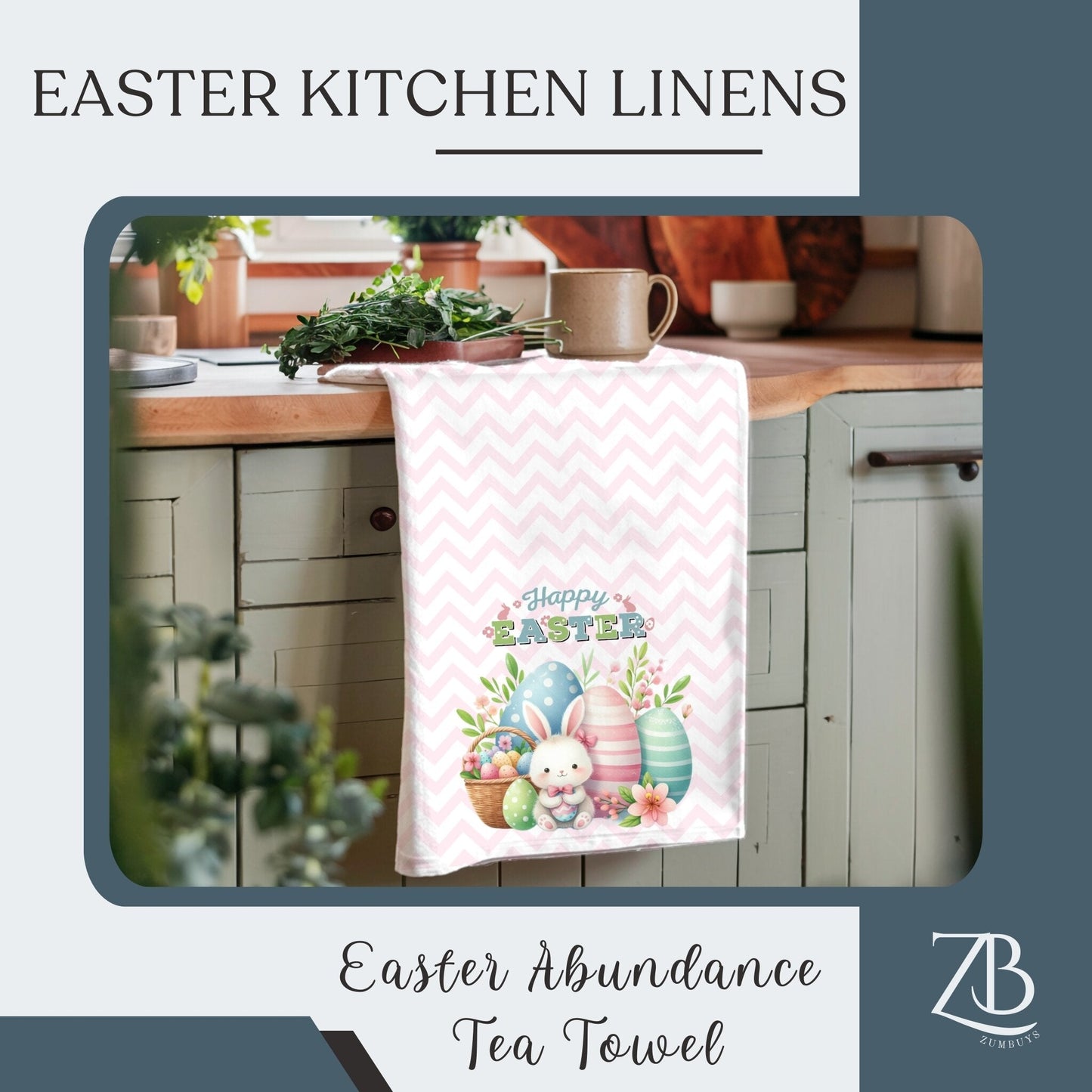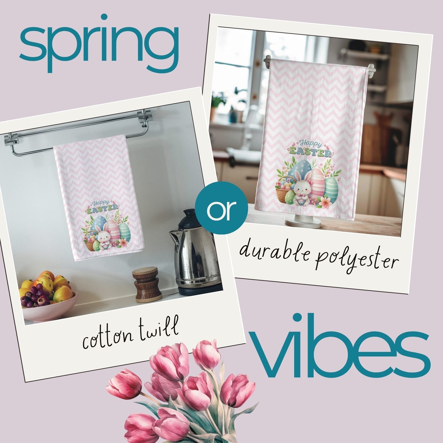 Celebrate the joyous spirit of Easter with the Easter Abundance Tea Towel! Crafted from your choice of high-quality cotton twill or durable polyester, this charming kitchen essential features a delightful design showcasing a festive Easter bunny surrounded by colorful Easter eggs and a basket, all set against a playful pink chevron pattern. Measuring 18x30 inches, this lightweight towel is perfect for enhancing your kitchen décor and making seasonal celebrations even more delightful. The Happy Easter message adds a cheerful touch, making it not only a practical kitchen accessory but also a lovely decorative element for your home. With hemmed edges and machine washable fabric, the Easter Abundance Tea Towel is designed for long-lasting use while remaining vibrant and fresh wash after wash. Whether you’re using it to dry dishes, as a décor for your Easter brunch, or gifting it to a loved one, this towel embodies the essence of springtime and Easter festivities. Bring warmth and vibrancy to your kitchen with the Easter Abundance Tea Towel—the perfect addition to your Easter decorations!