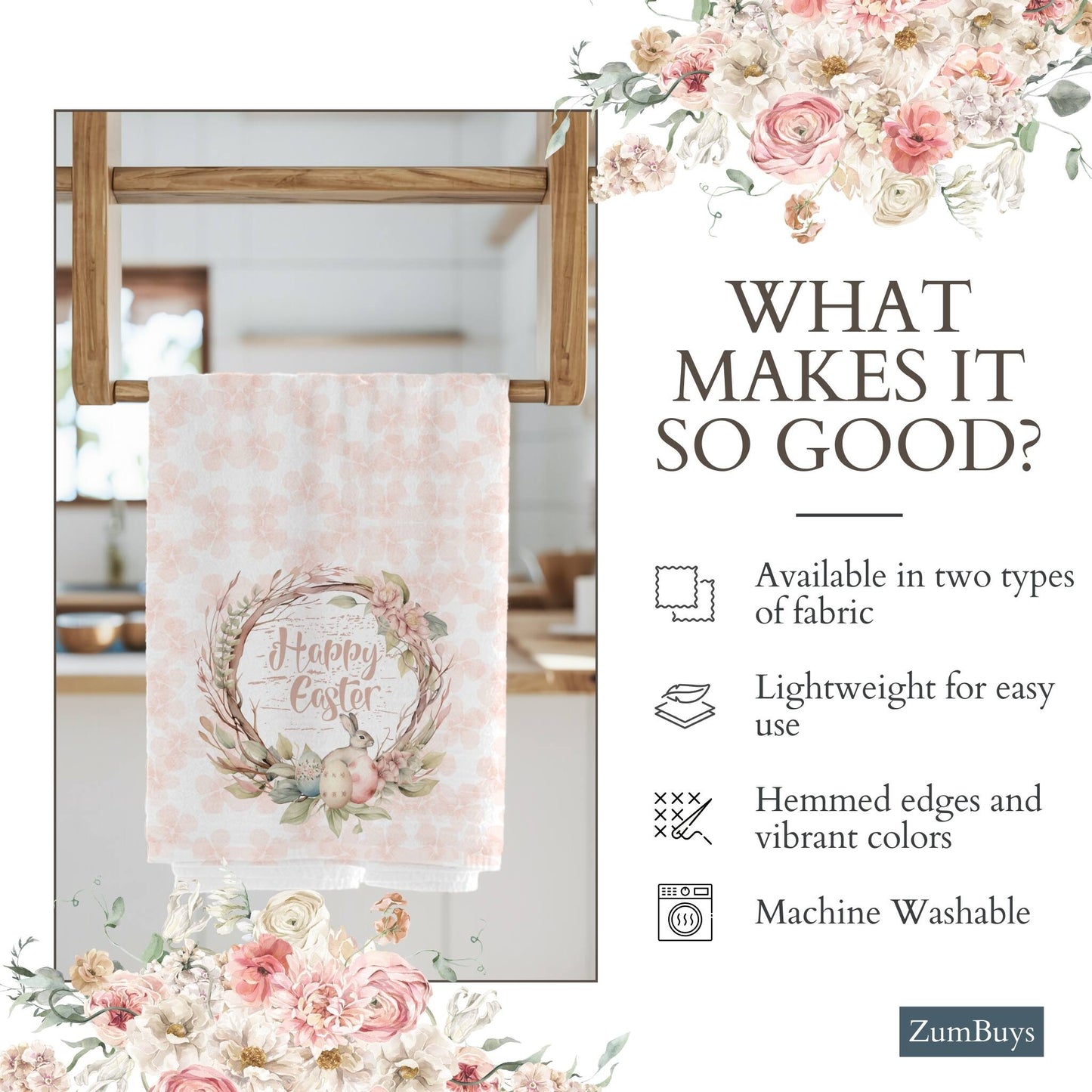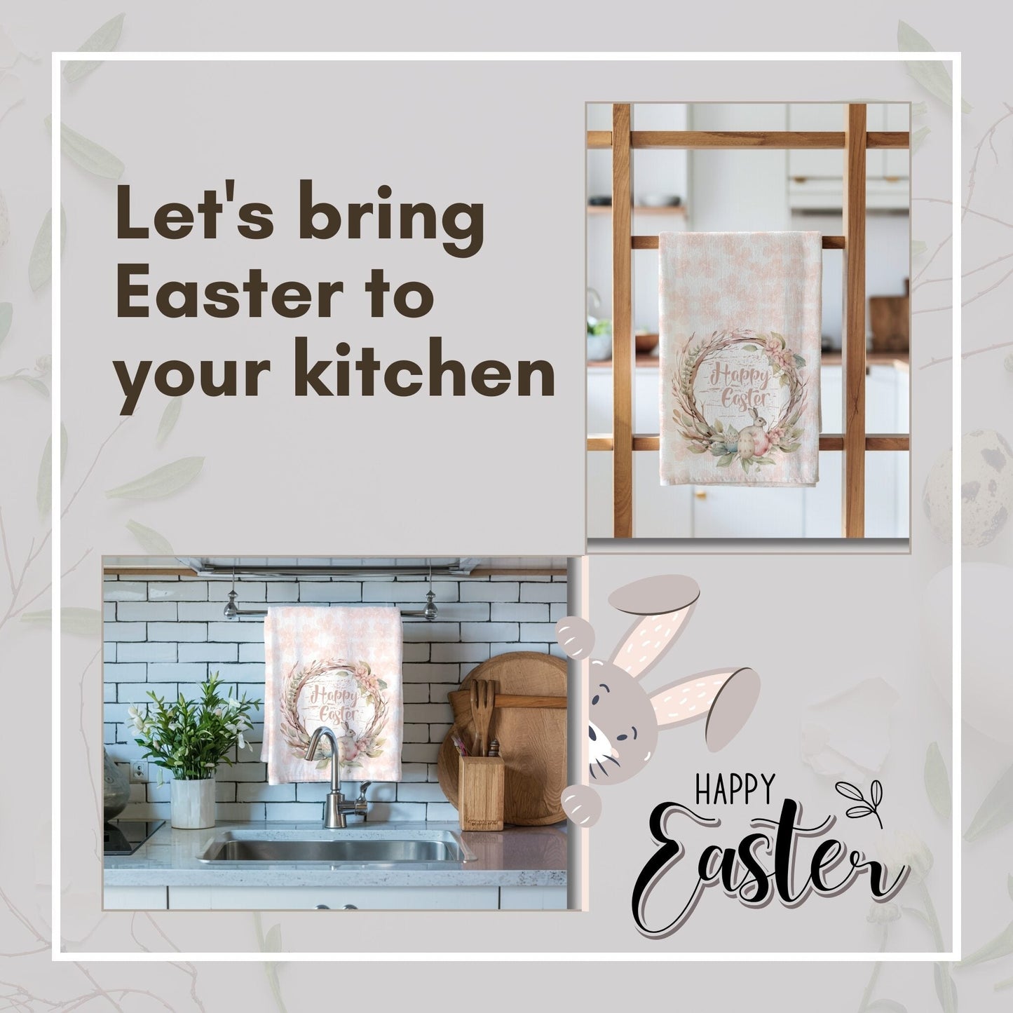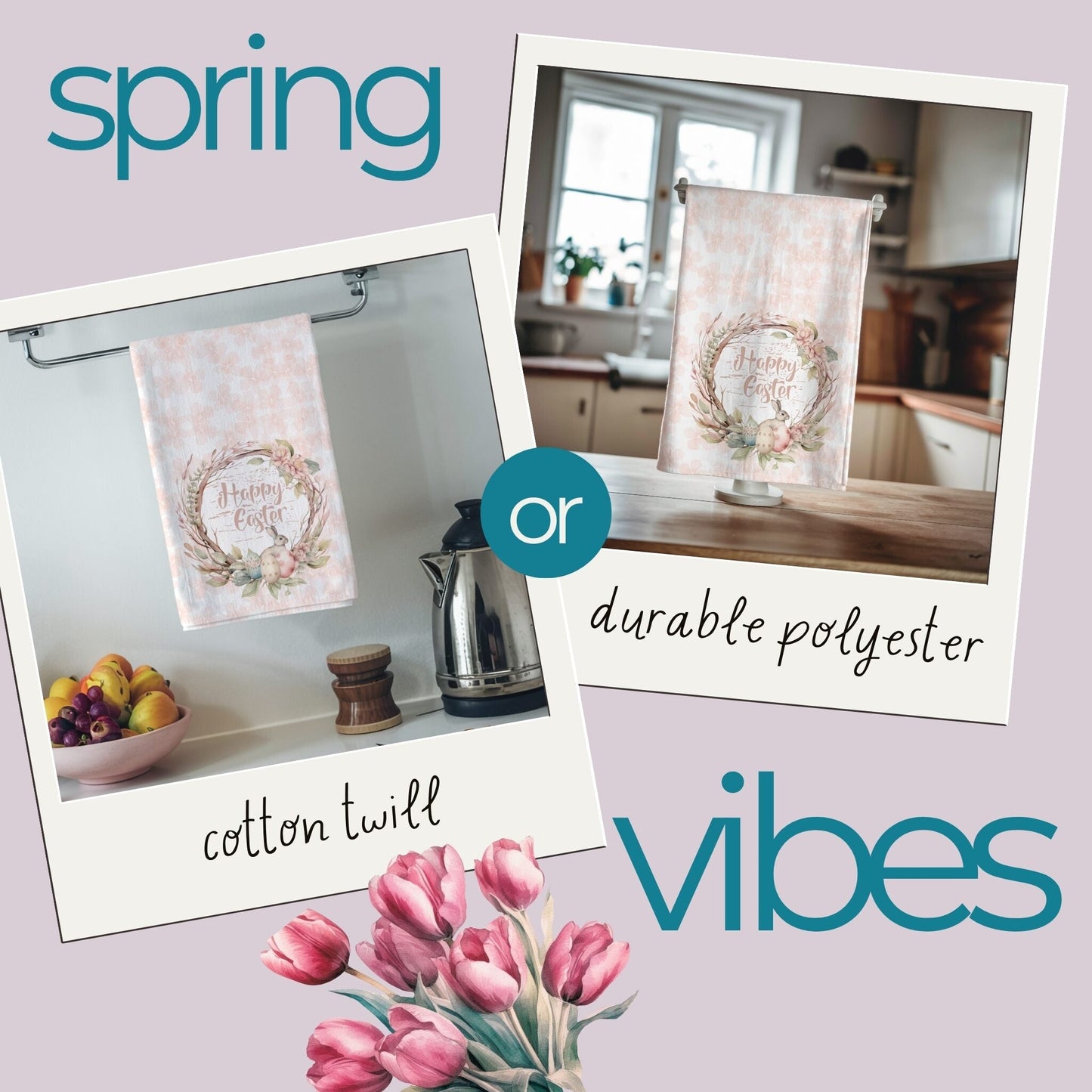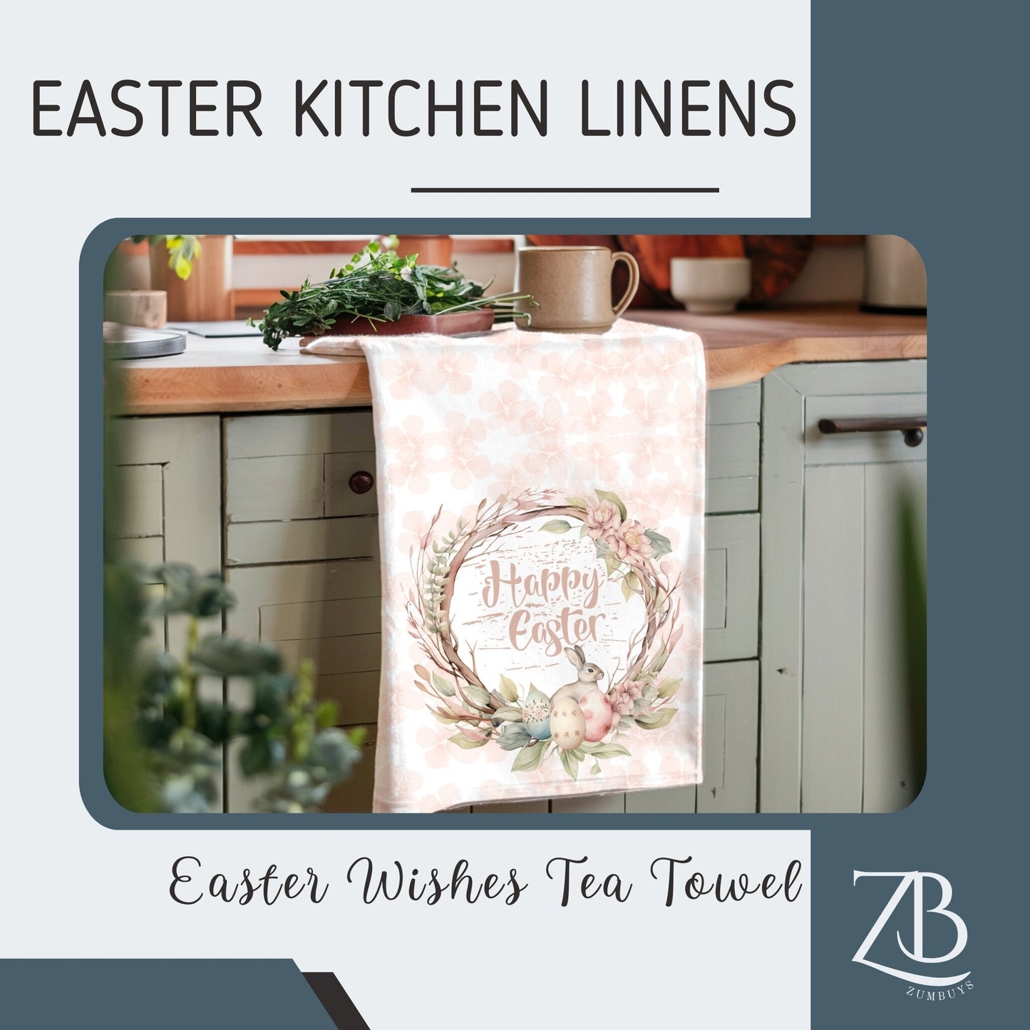 Celebrate the spirit of Easter with our Easter Wishes Tea Towel, a delightful addition to your kitchen décor. This beautifully designed towel features an adorable bunny surrounded by decorative Easter eggs nestled in a vibrant floral wreath, all set against a charming pink flower pattern. Whether you choose the soft, absorbent cotton option or the durable polyester, this towel combines functionality with festive flair. Measuring 18x30 inches, the lightweight design ensures it’s perfect for everyday use, while the hemmed edges contribute to its durability and long-lasting appeal. Ideal for drying dishes or bringing a pop of color to your kitchen, this decorative tea towel makes a wonderful Easter gift for home or a stylish statement piece for your own décor. Plus, it's machine washable, ensuring easy care and maintenance. Add a touch of springtime joy to your home with the Easter Wishes Tea Towel — where festive design meets practical utility! Perfect for decorating your kitchen or as a thoughtful gift, it embodies the warmth and happiness of the Easter season.