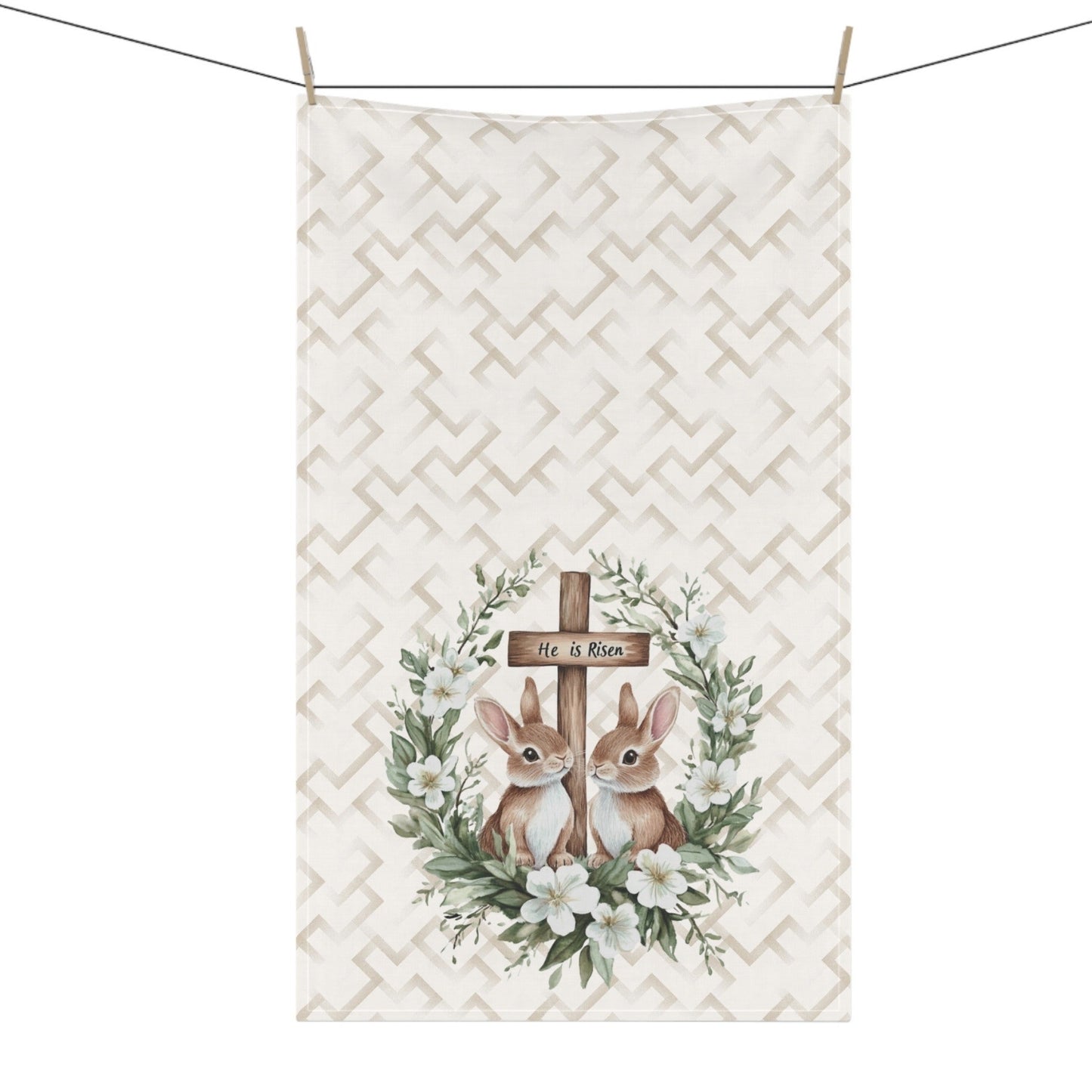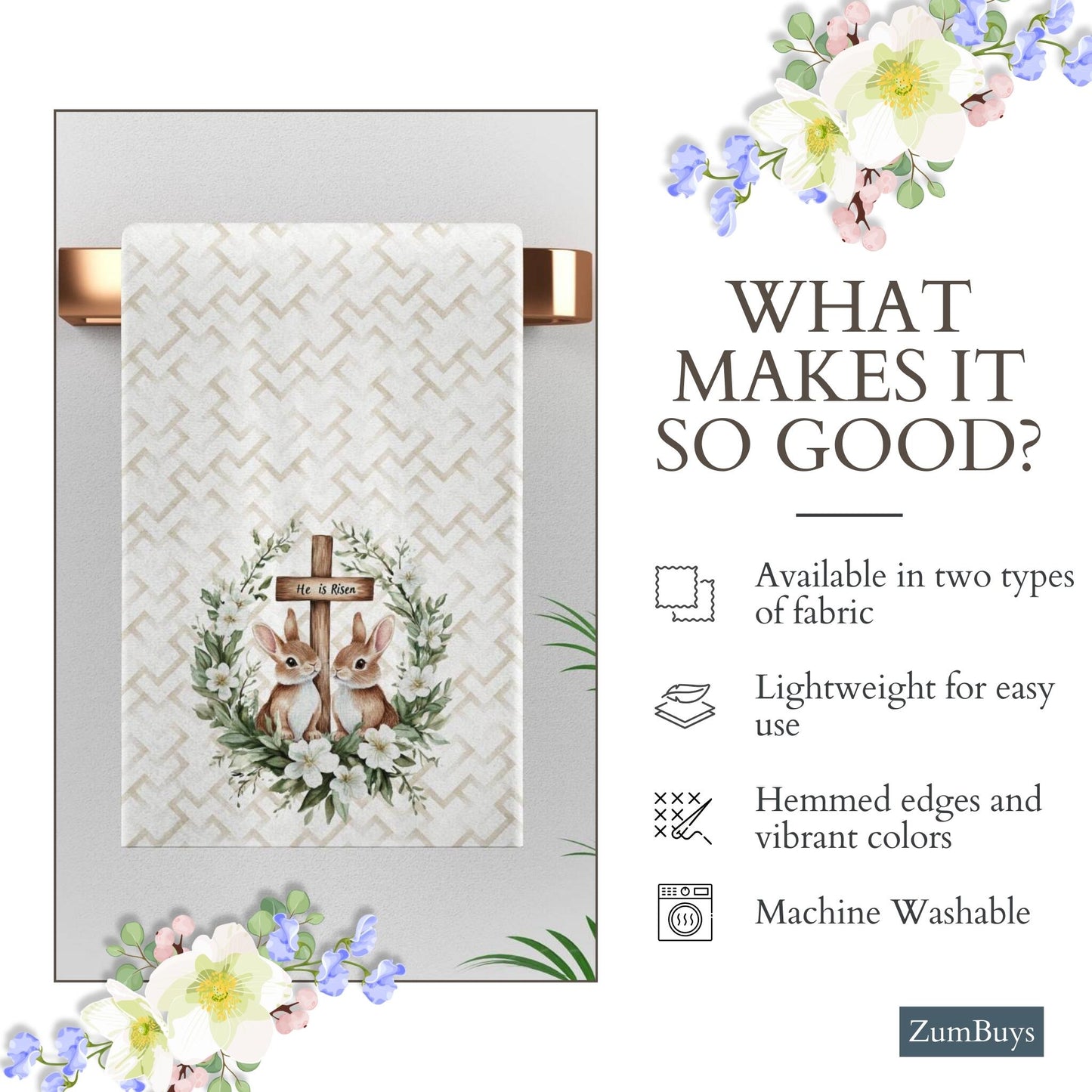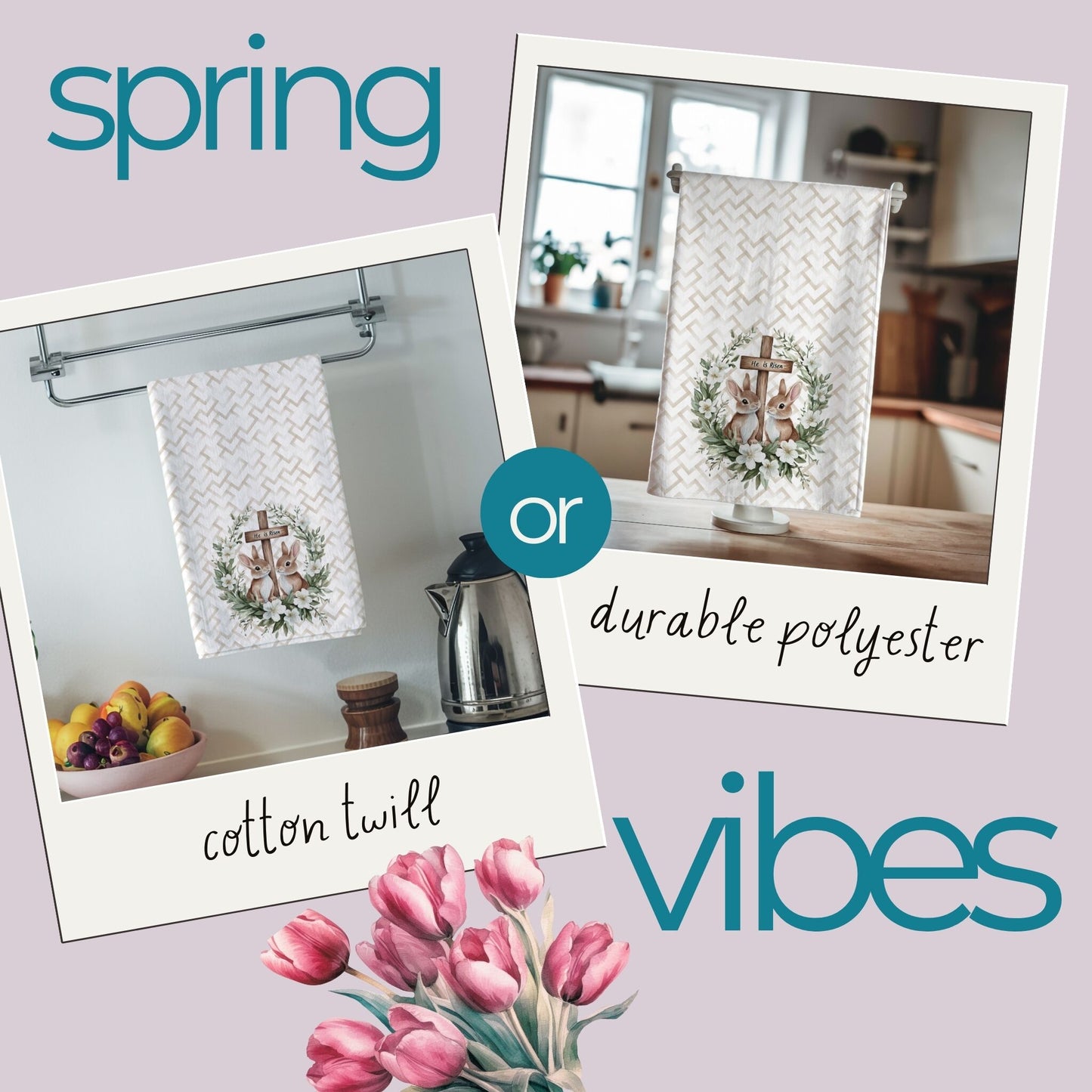Brighten up your kitchen with the Glory Bound Tea Towel, a delightful blend of functionality and festive charm! Crafted from premium cotton or durable polyester, this 18x30 inch kitchen essential features an enchanting floral wreath design that beautifully showcases a cross with the uplifting phrase "He is Risen," along with adorable bunny motifs. Perfect for Easter celebrations or springtime décor, this tea towel is designed with lightweight, absorbent fabric that not only enhances your kitchen aesthetics but also makes drying dishes a breeze. The hemmed edges ensure durability, while the vibrant colors add a cheerful touch to your home. Whether you're looking for a thoughtful Easter gift or a stylish addition to your kitchen, the Glory Bound Tea Towel serves as both a practical kitchen accessory and a lovely piece of religious home décor. Machine washable and long-lasting, this decorative towel is a great choice for everyday use, sure to bring joy and inspiration to any space. Embrace the season with the charming charm of this beautiful tea towel!