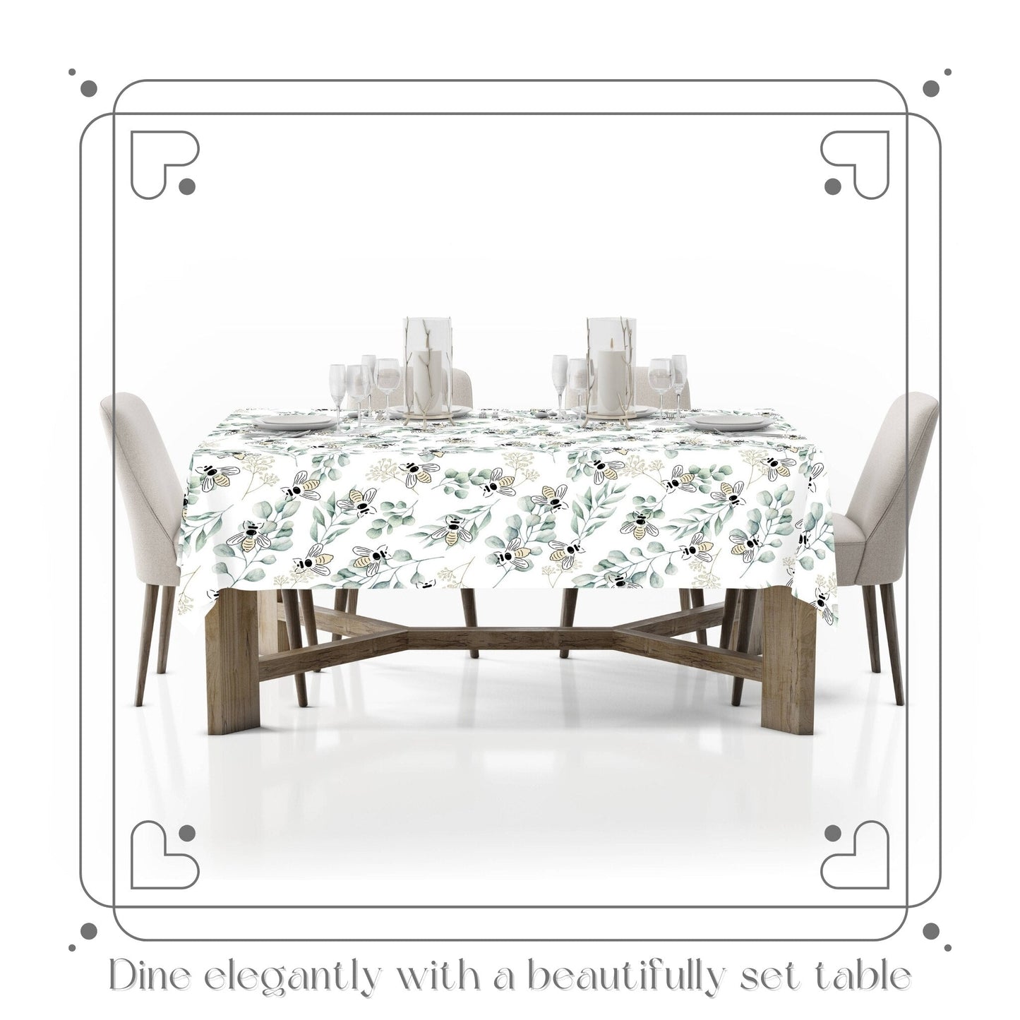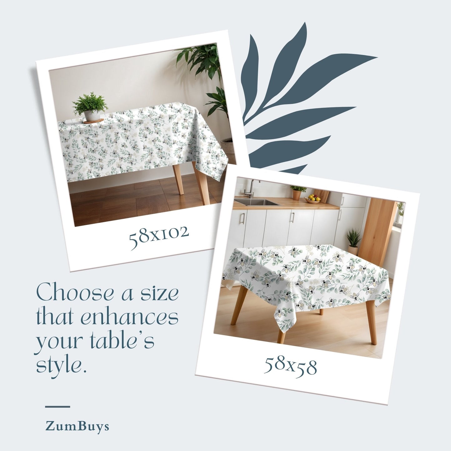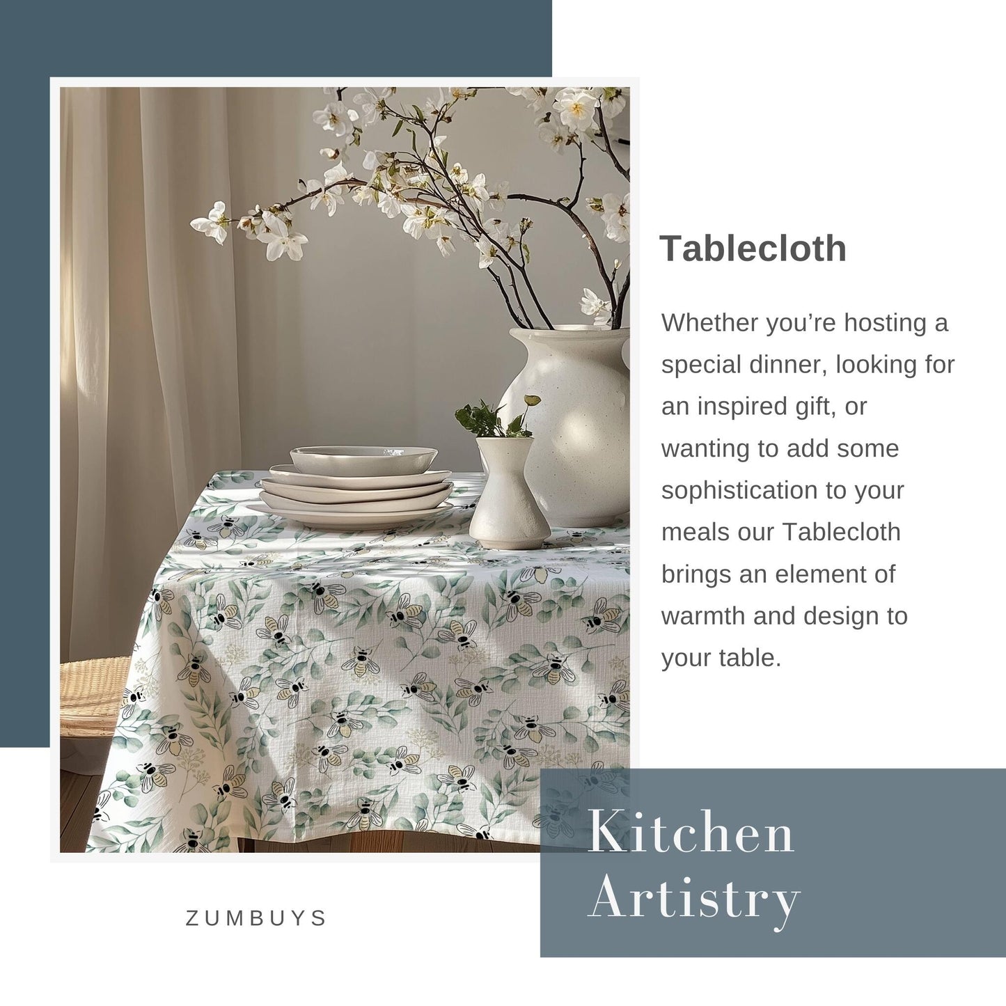 Elevate your dining space with the Leafy Bumble Cotton Tablecloth, where classic elegance meets playful charm. Crafted from premium cotton, this durable tablecloth features a delightful pattern of watercolor green leaves and whimsical bumble bees set against a crisp white backdrop—perfect for bringing the beauty of nature indoors. Designed for both everyday meals and special occasions, the Leafy Bumble Tablecloth is an ideal choice for spring gatherings, summer garden parties, and farmhouse-inspired kitchens. Its modern botanical design offers a fresh update to your décor, while the soft, machine-washable fabric ensures easy maintenance and long-lasting vibrancy. Available in two convenient sizes (58x58 or 58x102 inches), this tablecloth provides a perfect fit for square or rectangular tables. The finished hem edging adds a refined touch, while the fade-resistant print and quick-drying cotton mean it stays looking beautiful wash after wash. With a designer front-sided print and a clean white back, it’s an elegant accent for your next brunch, tea party, or family dinner. Transform your table into a botanical haven with the Leafy Bumble Cotton Tablecloth—where every meal feels like a garden celebration.