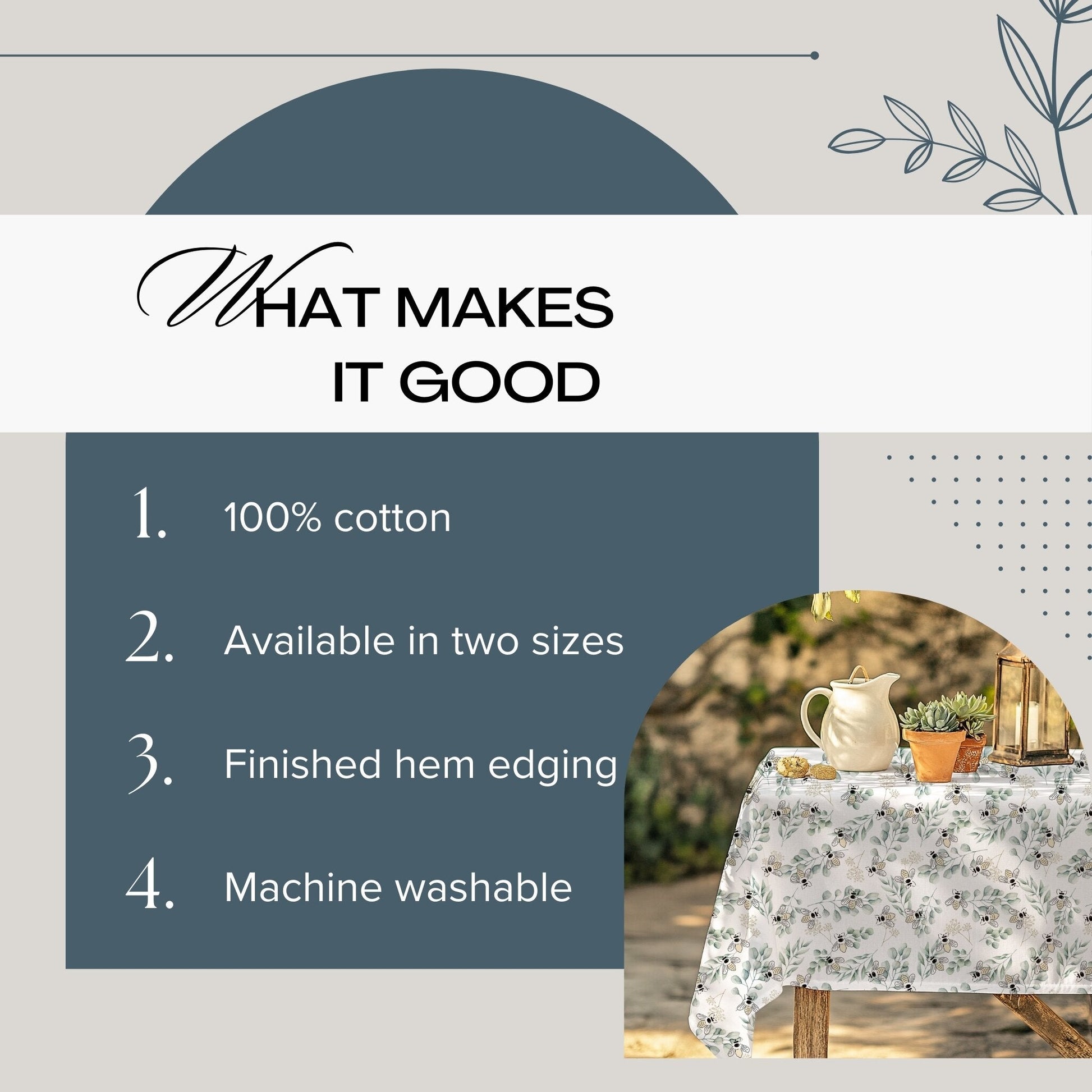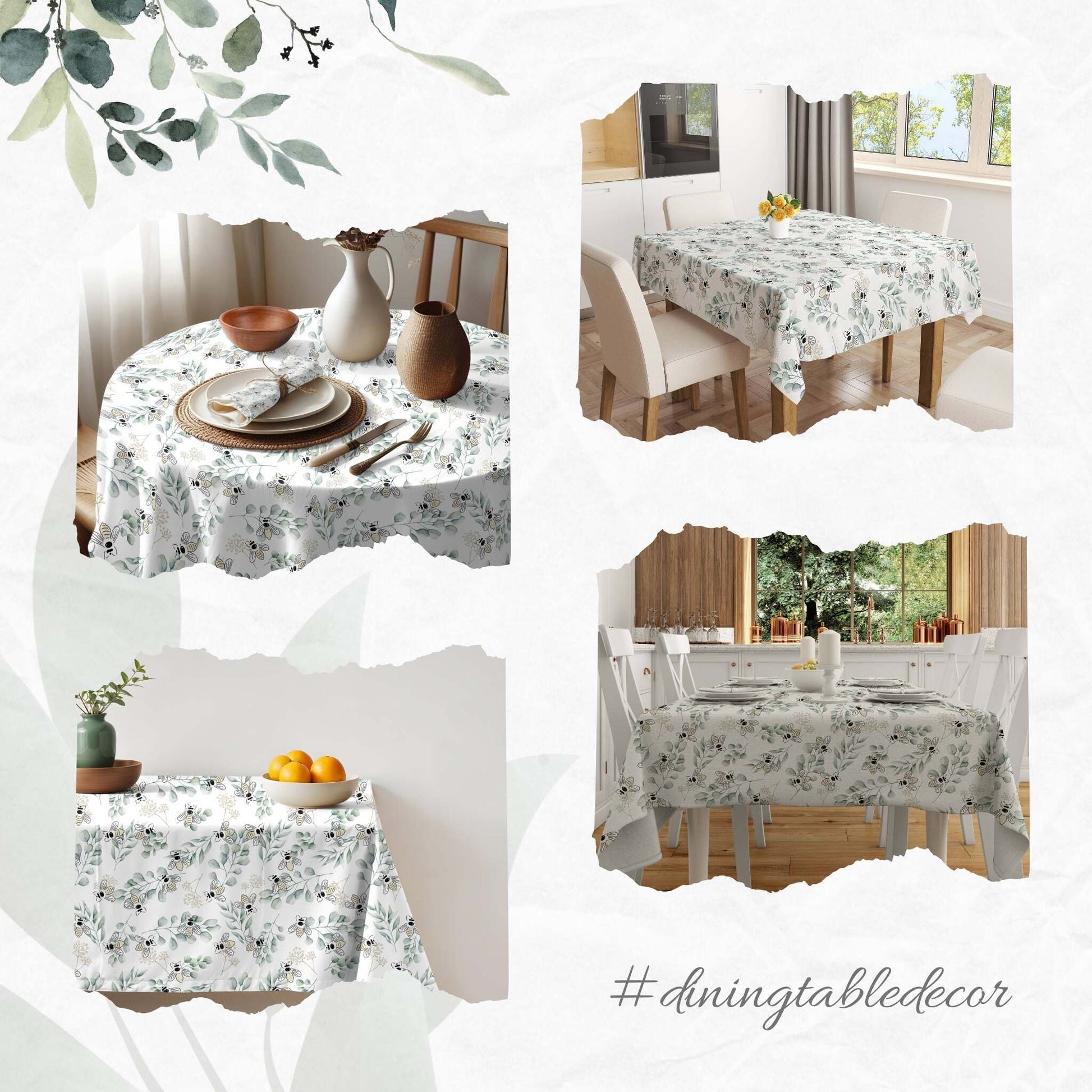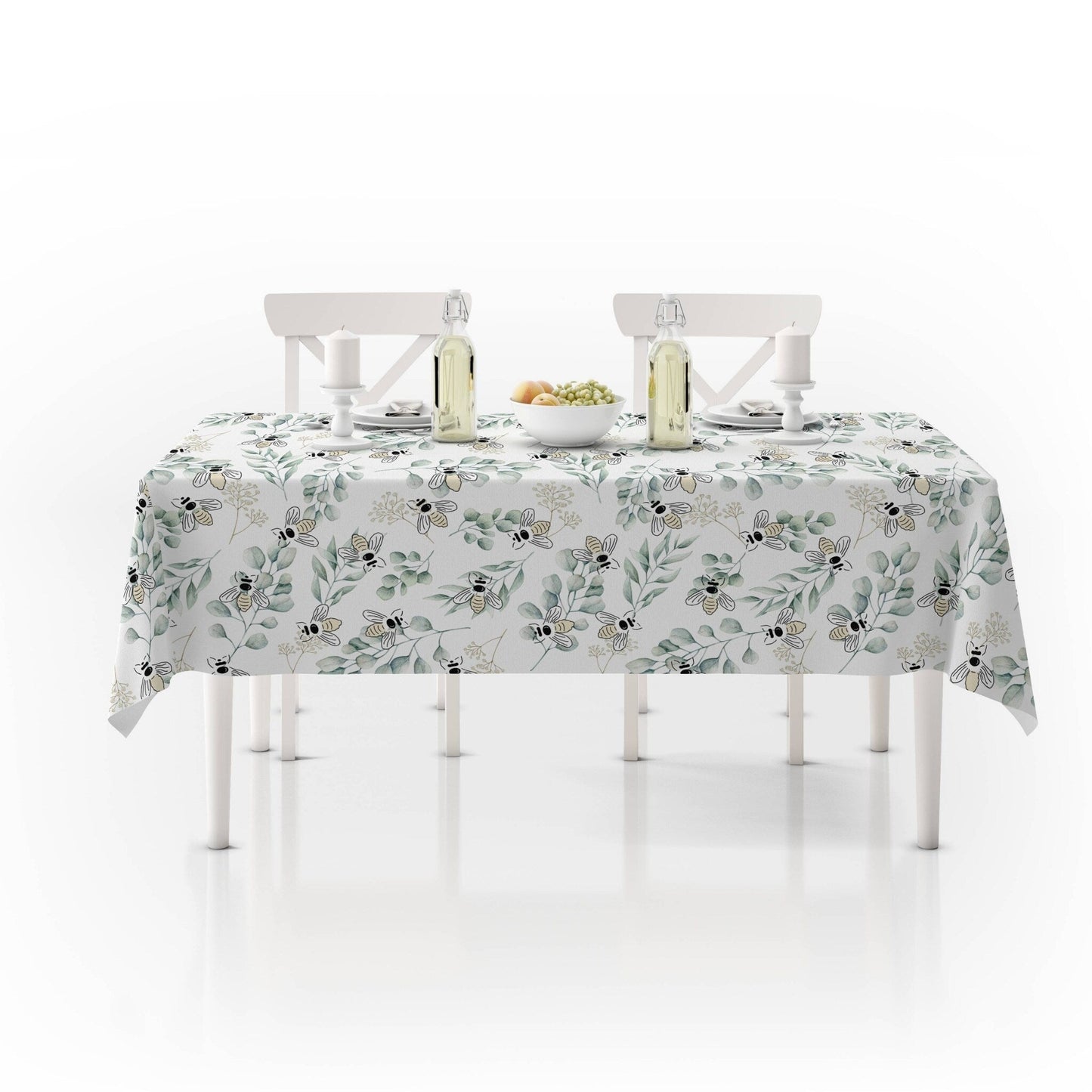 Elevate your dining space with the Leafy Bumble Cotton Tablecloth, where classic elegance meets playful charm. Crafted from premium cotton, this durable tablecloth features a delightful pattern of watercolor green leaves and whimsical bumble bees set against a crisp white backdrop—perfect for bringing the beauty of nature indoors. Designed for both everyday meals and special occasions, the Leafy Bumble Tablecloth is an ideal choice for spring gatherings, summer garden parties, and farmhouse-inspired kitchens. Its modern botanical design offers a fresh update to your décor, while the soft, machine-washable fabric ensures easy maintenance and long-lasting vibrancy. Available in two convenient sizes (58x58 or 58x102 inches), this tablecloth provides a perfect fit for square or rectangular tables. The finished hem edging adds a refined touch, while the fade-resistant print and quick-drying cotton mean it stays looking beautiful wash after wash. With a designer front-sided print and a clean white back, it’s an elegant accent for your next brunch, tea party, or family dinner. Transform your table into a botanical haven with the Leafy Bumble Cotton Tablecloth—where every meal feels like a garden celebration.