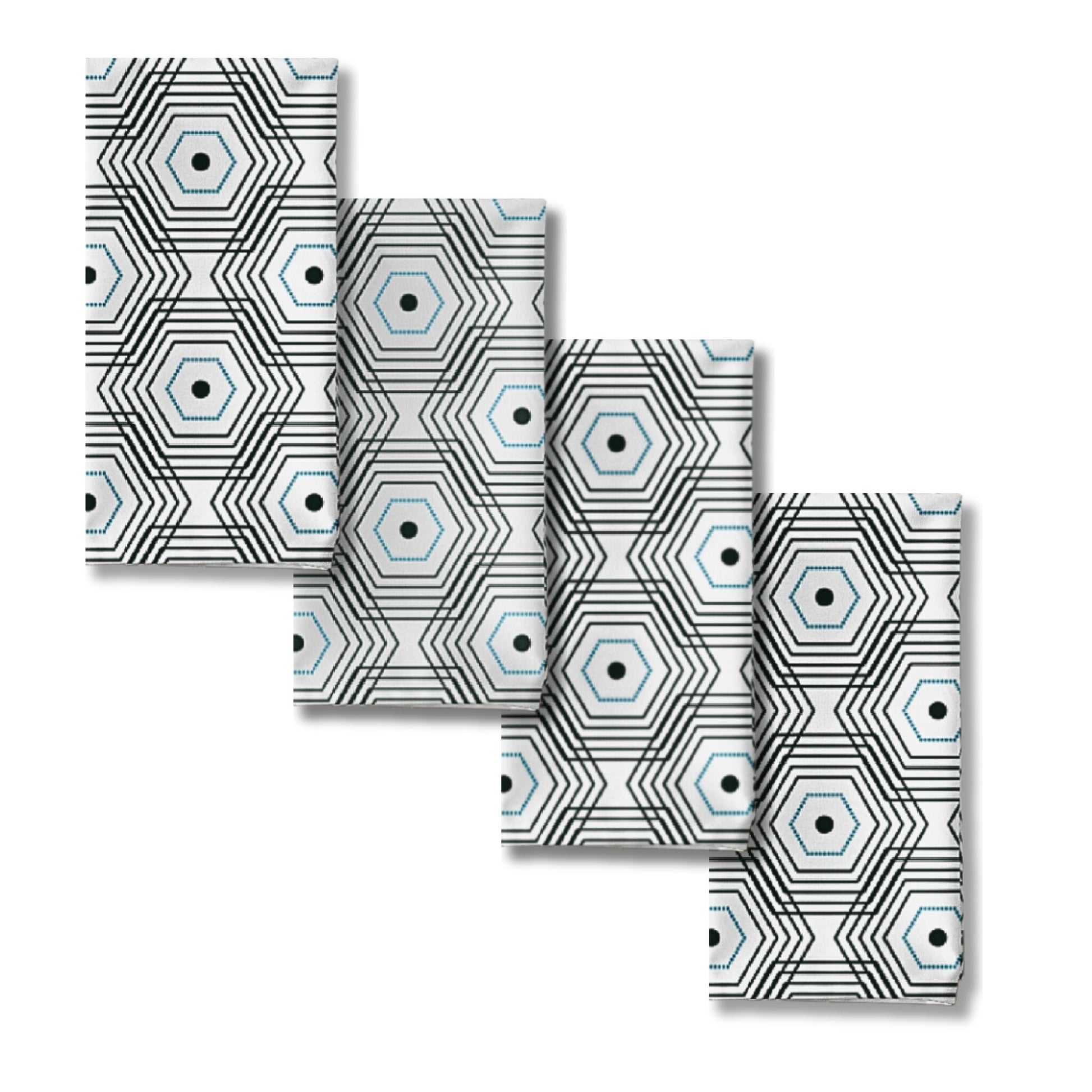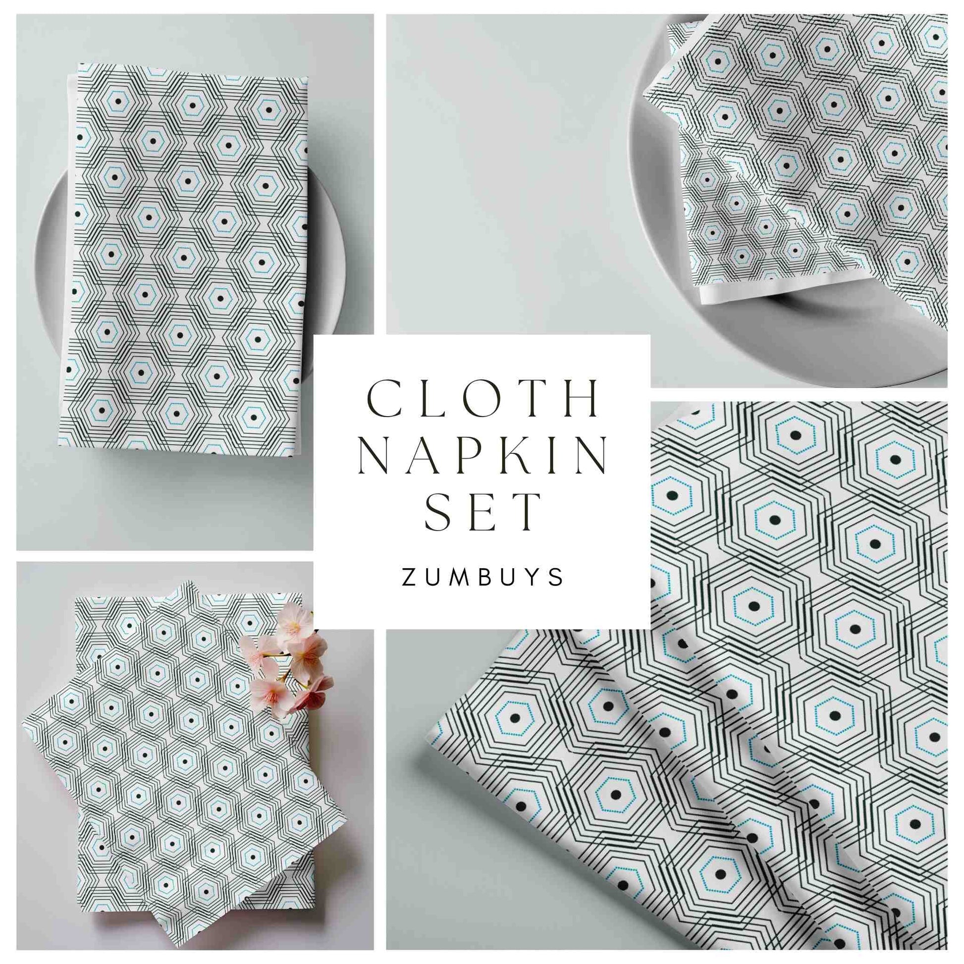 Elevate your dining experience with the Octamesh Cloth Napkins. This set of 4 napkins features a striking black and blue octagon geometric print, adding a touch of mid-century modern aesthetic to your table setting. Made from high-quality cloth, these reusable napkins are not only eco-friendly but also durable, ensuring they will last for many dinners to come. The Danish modern decor style of these napkins makes them a perfect addition to any contemporary dining room. Whether you're hosting a dinner party or enjoying a casual meal, these cloth dinner napkins will add a touch of elegance and sophistication to your table. Upgrade your dining experience with the Octamesh Cloth Napkins Set.