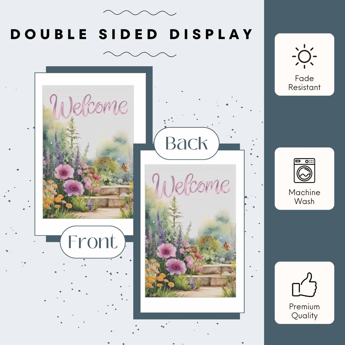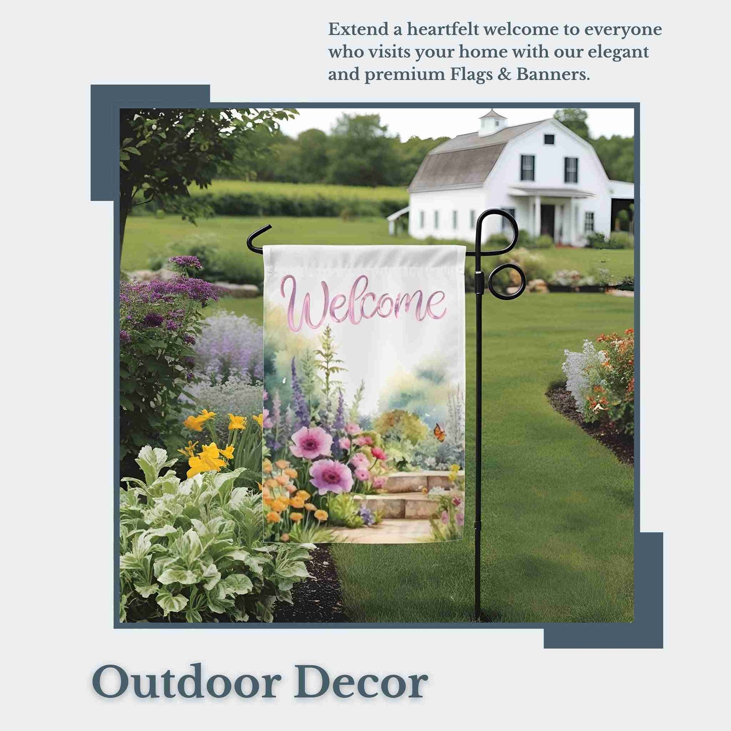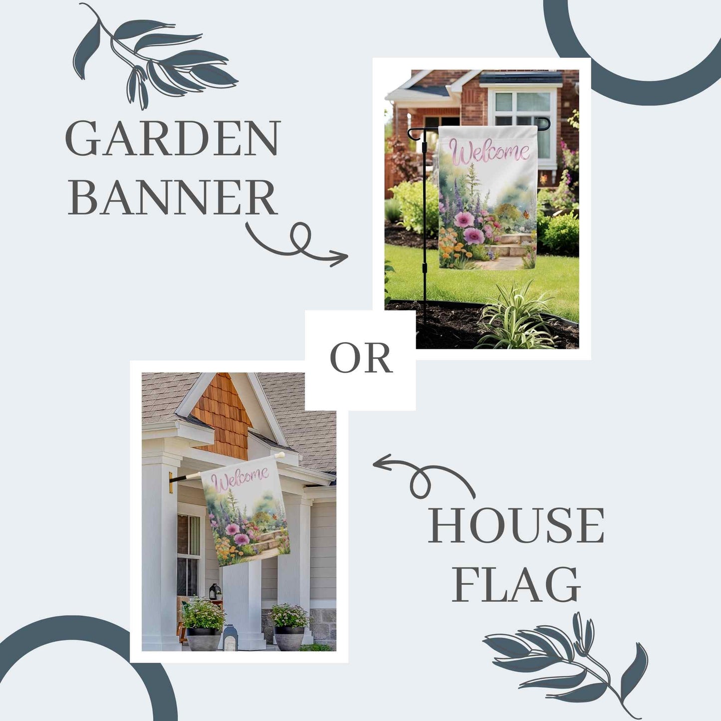 Welcome guests with the vibrant charm of the Petalscape Garden Banner or House Flag, a perfect addition to your spring and summer outdoor décor. Featuring a beautifully detailed floral garden design, this double-sided fabric banner adds a warm and inviting touch to your front porch, garden, or yard. Crafted from durable poly poplin-canvas fabric in an elegant off-white background, it’s designed to withstand the elements while maintaining its vivid colors season after season. Available in multiple sizes—12”x18”, 18.325”x27”, 24”x32”, and 24”x36”—this versatile floral banner fits most standard garden flag poles (stand or pole not included). The top pole slot makes hanging effortless with no need for additional loops. Whether you’re looking to brighten your home’s entrance or searching for the perfect gift for the gardening enthusiast in your life, the Petalscape Garden Banner is an ideal seasonal accent to celebrate the beauty of spring and summer.