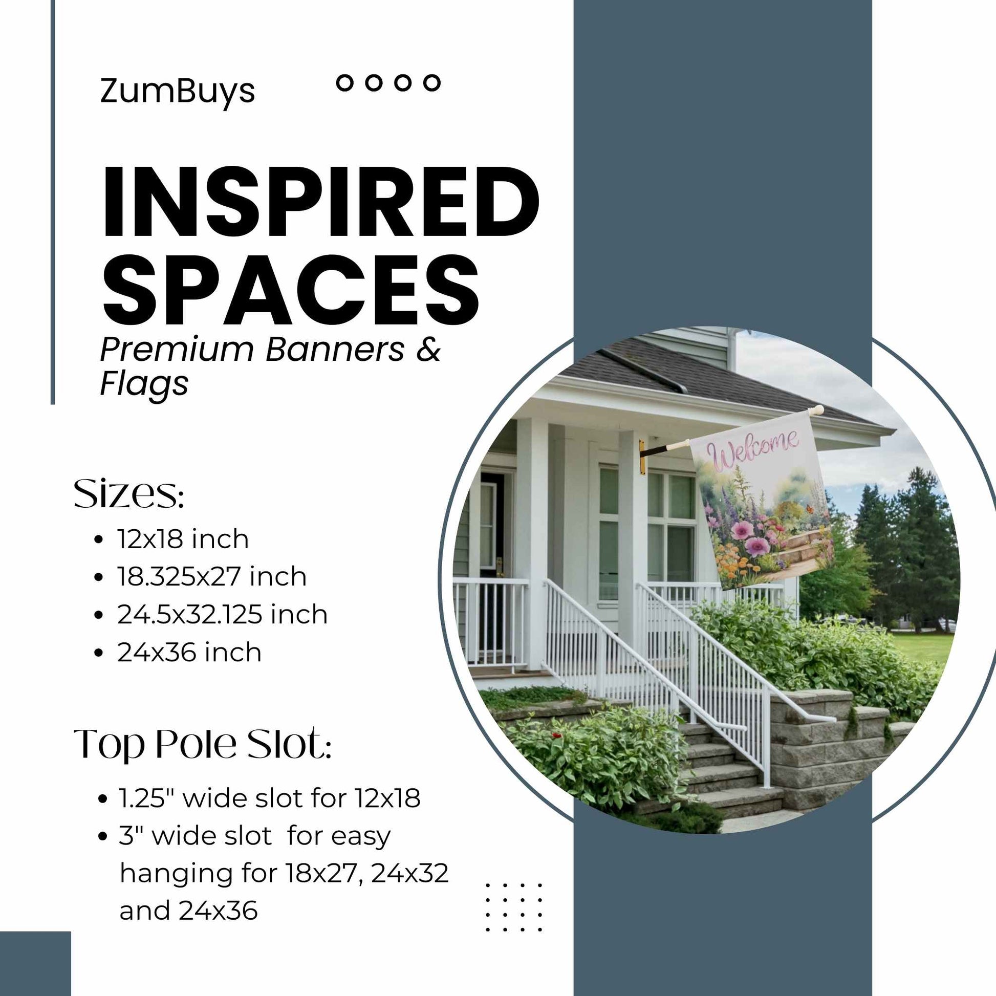 - 1.25" wide top pole slot for 12x18, 3" wide top pole slot for easy hanging for 18x27 and 24x36