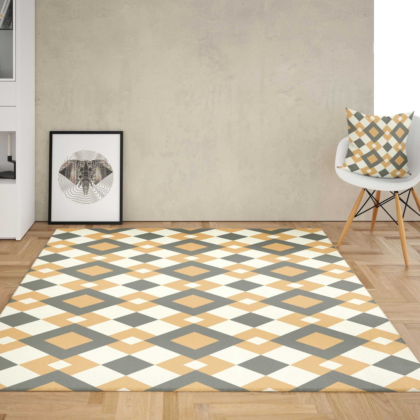 Retro Rhomb Area Rug is a stylish and trendy area rug which is designed with a diamond rhombus pattern in a vintage inspired 70s style. This geometric pattern is also characterized with a mid-century modern style. Made of 100% polyester chenille, this rug is durable and withstands the everyday wear and tear. The area rug is also super easy to maintain, with a quick wipe down with a damp cloth. This floor rug is perfect for any room, and adds the perfect touch of luxury and elegance to any room.