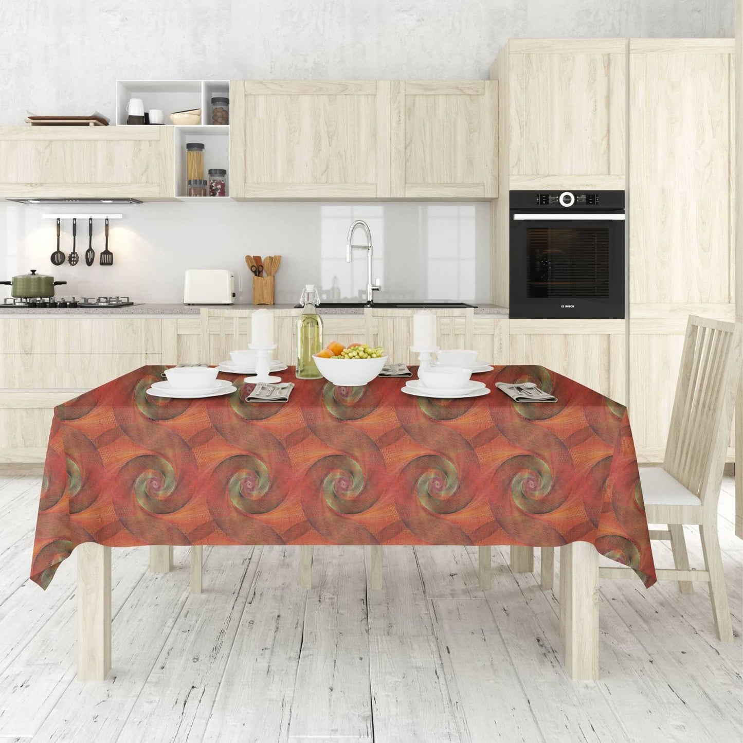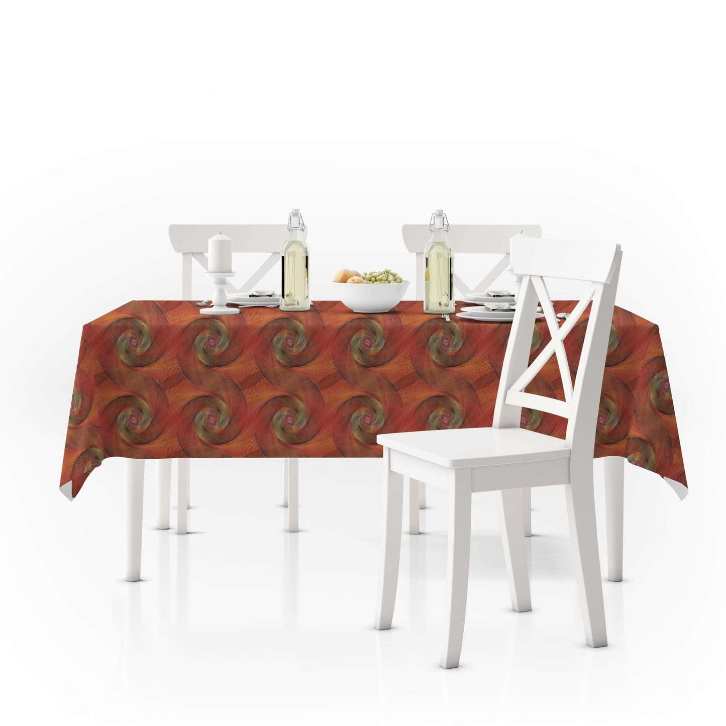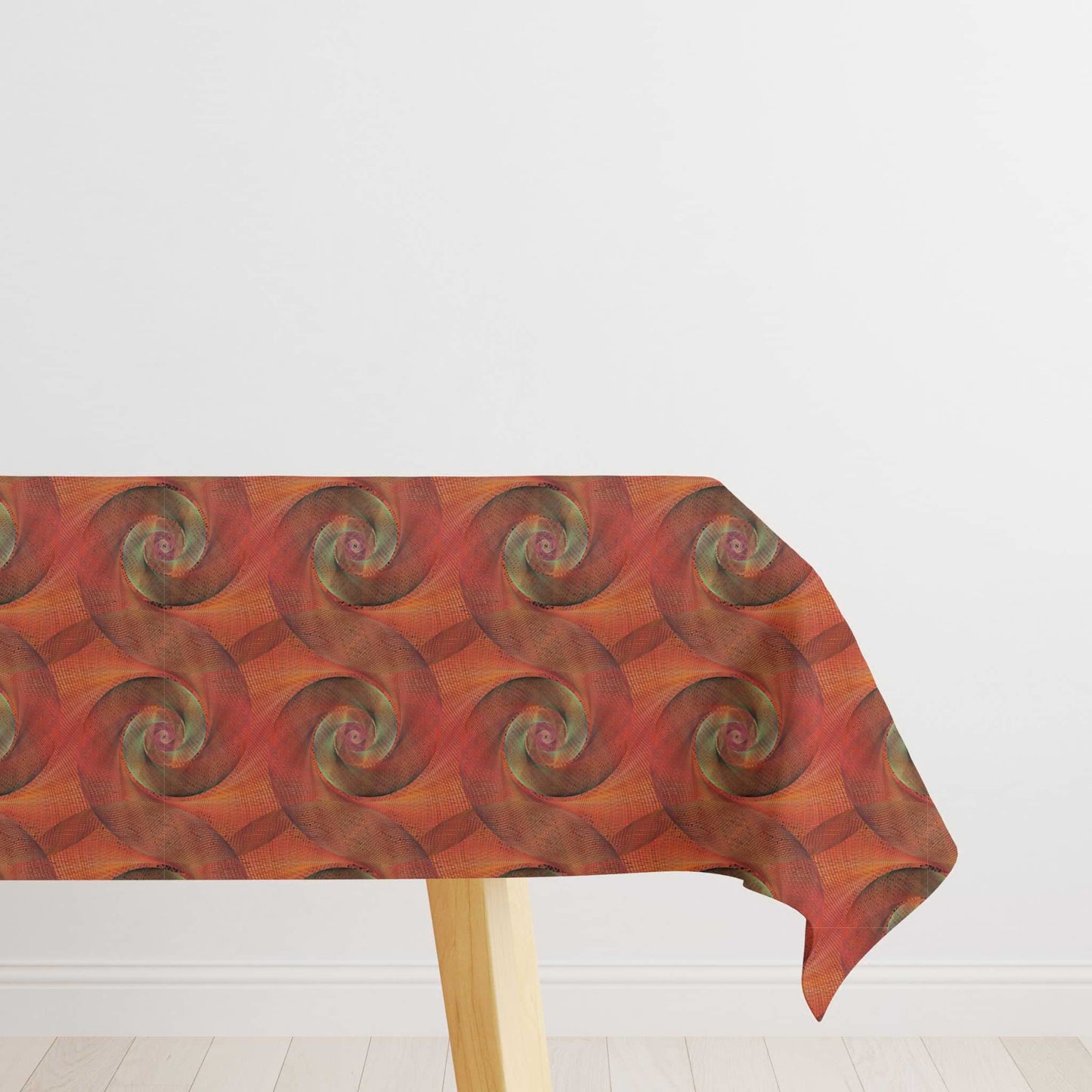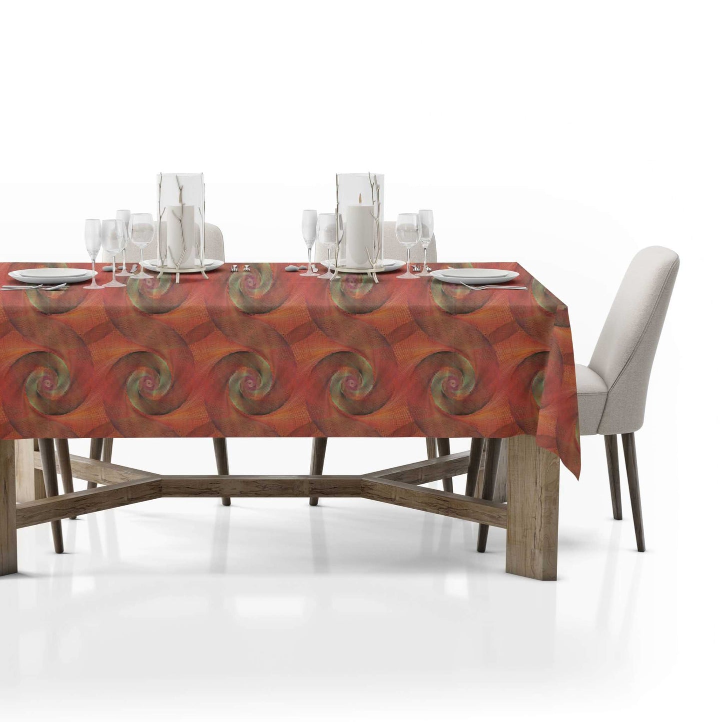 Sinopia Swirl Tablecloth is the perfect addition for your dining table. The red tablecloth with a splash of green has a twisted swirl pattern design that gives your table a dynamic touch. This tablecloth is made of 100% polyester material and is high-quality, durable and washable. The printed tablecloth is so vivid, it will look like a piece of art on your dining table. This swirl pattern printed tablecloth is the perfect way to add a touch of style to your dining room.