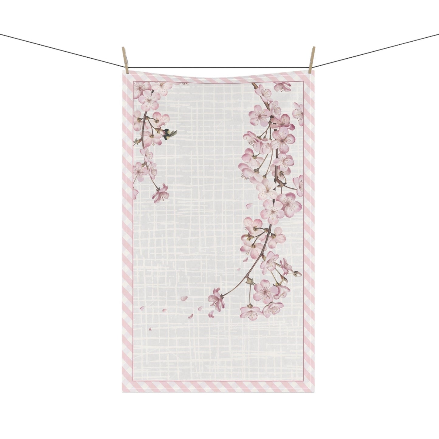 Bring the delicate beauty of spring right into your kitchen with our Sweet Blossom Tea Towel. Featuring a lovely print of pink cherry blossoms set against a classic checkered background, this tea towel adds a charming floral touch to any space—perfect for farmhouse, Japanese-inspired, or modern kitchens. Measuring a generous 18x30 inches, the Sweet Blossom Tea Towel is crafted from your choice of absorbent cotton twill or durable polyester. Lightweight and machine washable, it’s designed for everyday use yet beautiful enough to be a decorative accent. Finished with hemmed edges and printed in vibrant, long-lasting colors, this pink kitchen towel stands up to repeated washing and kitchen duties without losing its elegance. Whether you’re drying dishes, lining a bread basket, or looking for the perfect gift for a home cook, this cherry blossom towel delivers both function and style. Add an enchanting floral flair to your kitchen linens collection, or share the sweetness as a thoughtful housewarming or hostess gift.