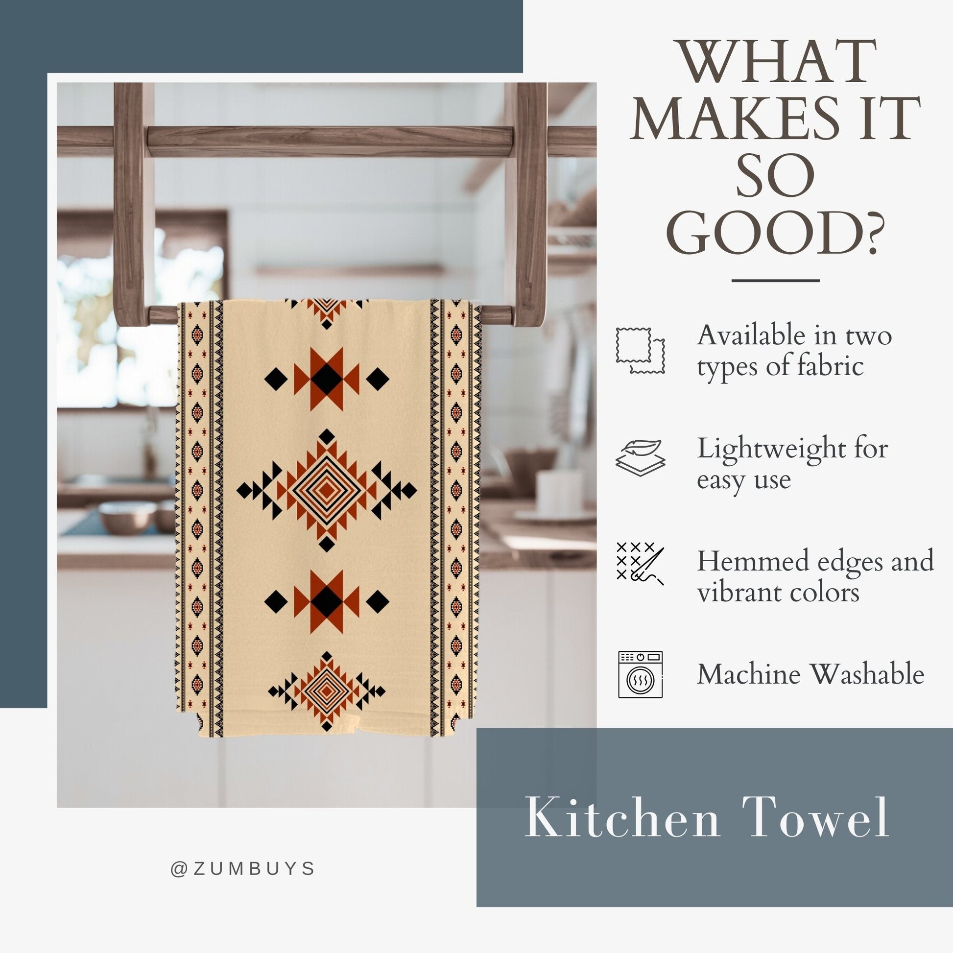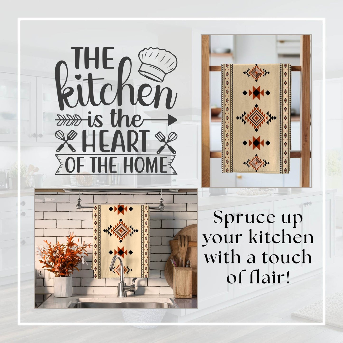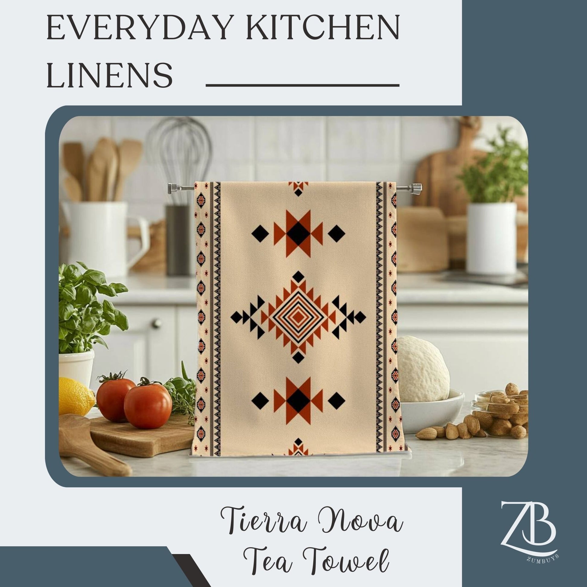 Elevate your kitchen décor with the Tierra Nova Tea Towel, featuring a striking Aztec design inspired by Native American geometric patterns. This 18x30 inch towel showcases vibrant red, beige, and black hues, bringing a bold yet rustic touch to your Southwest or boho-style kitchen. Crafted from absorbent, lightweight cotton twill or durable polyester, it combines functionality with long-lasting durability. The hemmed edges and machine-washable fabric ensure easy care, while the front-side print keeps the intricate tribal pattern vivid wash after wash. Perfect as a decorative kitchen towel or a thoughtful hostess gift, the Tierra Nova Tea Towel adds charm and style to everyday tasks.