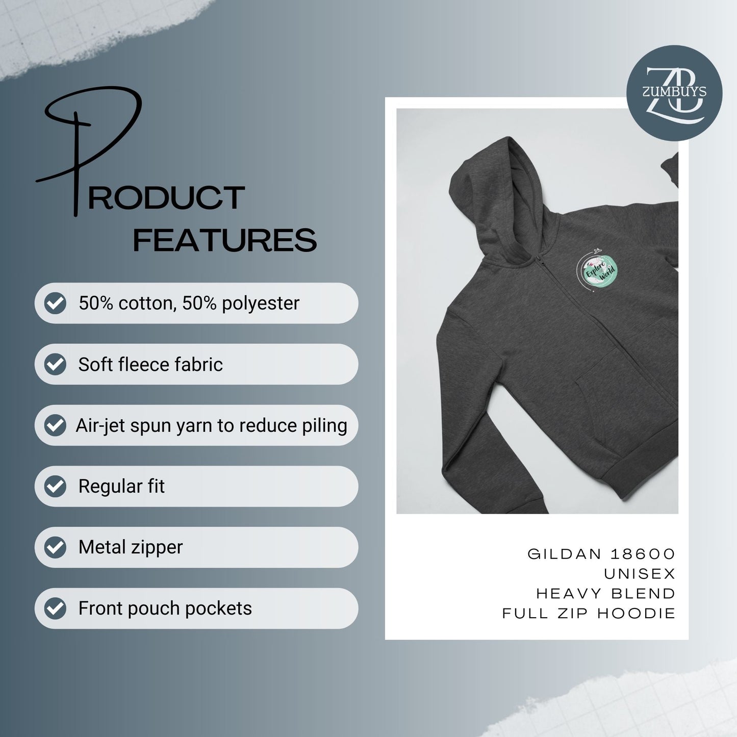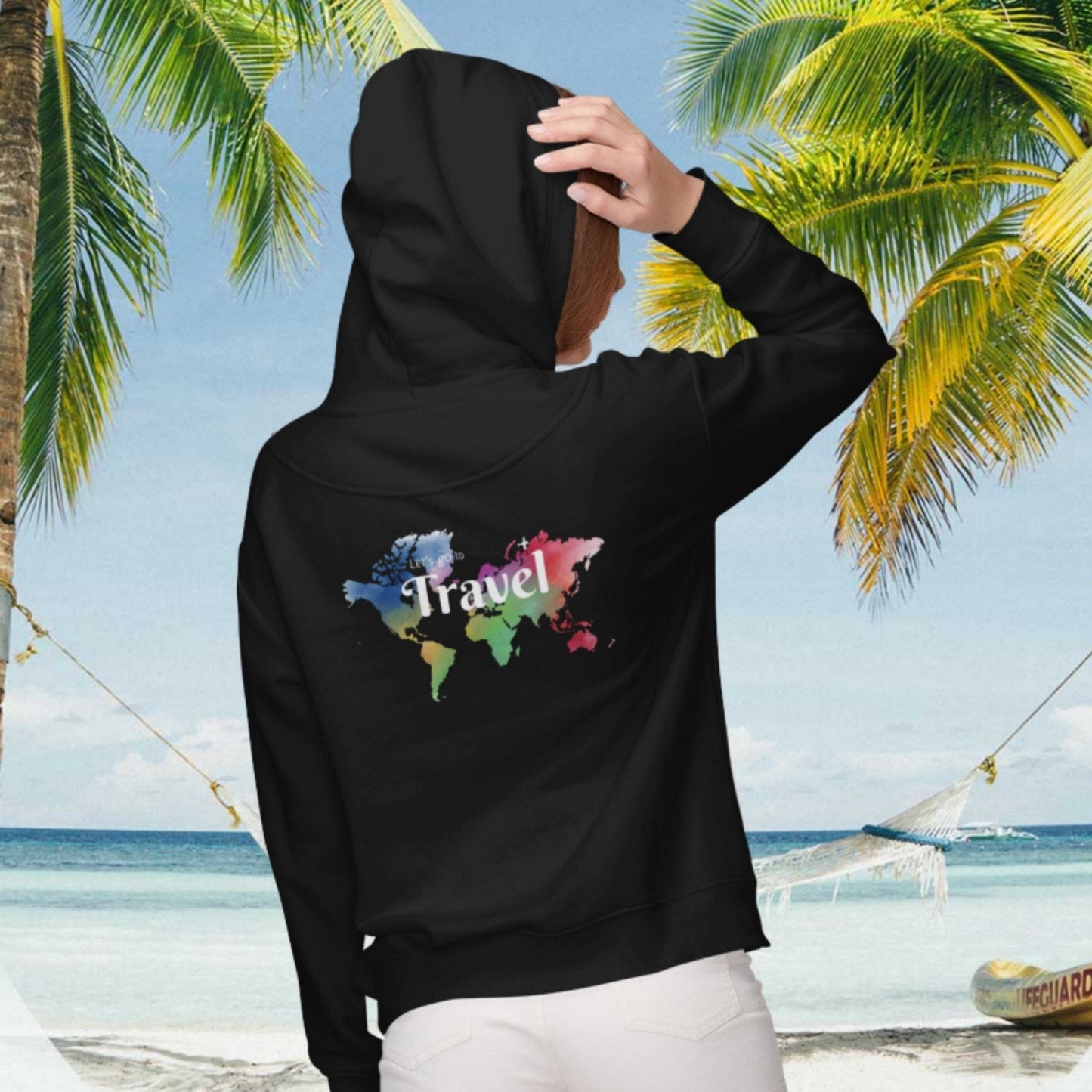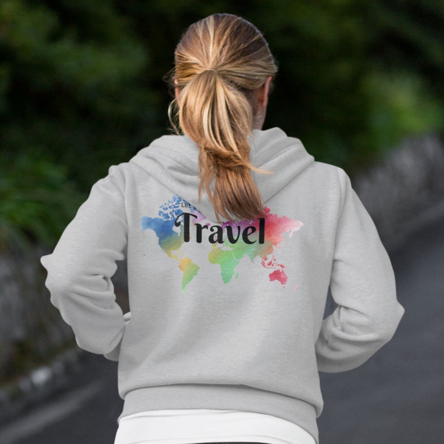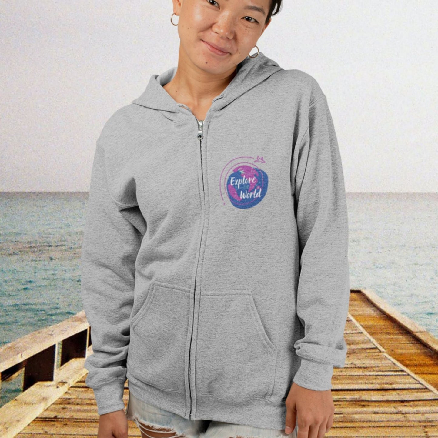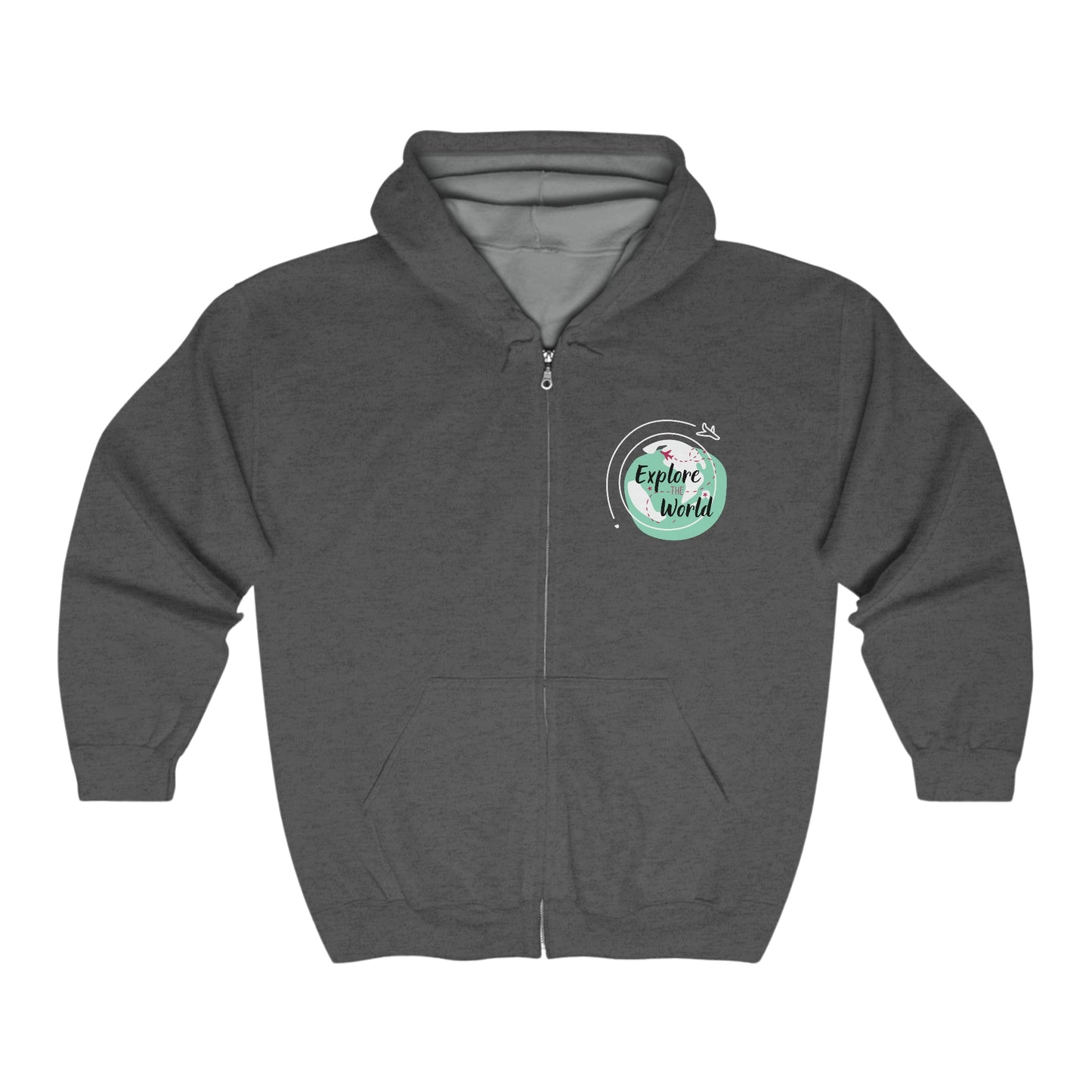The Travel Around Full Zip Hoodie is the perfect companion for world travelers and travel enthusiasts. Designed with a passion for exploration, this hoodie jacket embodies the spirit of wanderlust. It is not just a hoodie, but a statement piece that showcases your love for travel and adventure. The front of the hoodie proudly displays the phrase "Explore the World," reminding you of the endless possibilities awaiting you in every corner of the globe. On the back, you'll find the inspiring words "Let's go to... Travel," encouraging you to embark on new journeys and discover hidden gems. Made with comfort in mind, this hoodie features a full zip closure and a cozy hood to keep you warm during your travels. It is the perfect addition to your travel wardrobe, allowing you to express your wanderlust wherever you go. Looking for a unique gift for a world traveler? Look no further than this Travel Around Full Zip Hoodie. It is a thoughtful present that will inspire and excite anyone with a passion for exploring new destinations. So, whether you're planning your next vacation or simply want to showcase your love for travel, this hoodie is the ultimate travel companion. Get ready to embrace the spirit of adventure and let the world be your playground with this Travel Around Full Zip Hoodie.