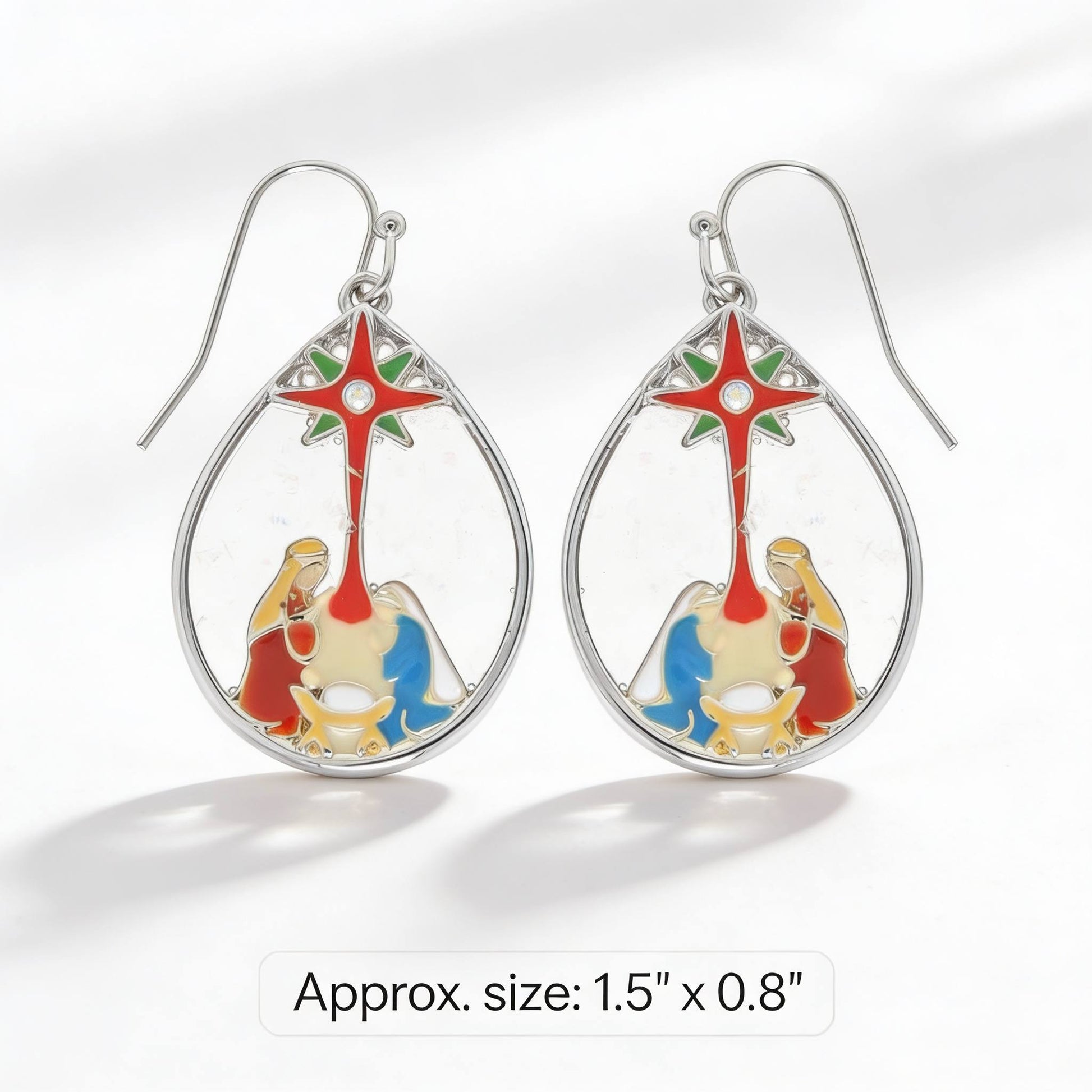 These earrings feature a detailed nativity design that reflects the story of Christmas, making them perfect for church services, holiday dinners, and meaningful celebrations with loved ones.