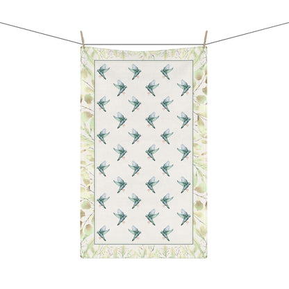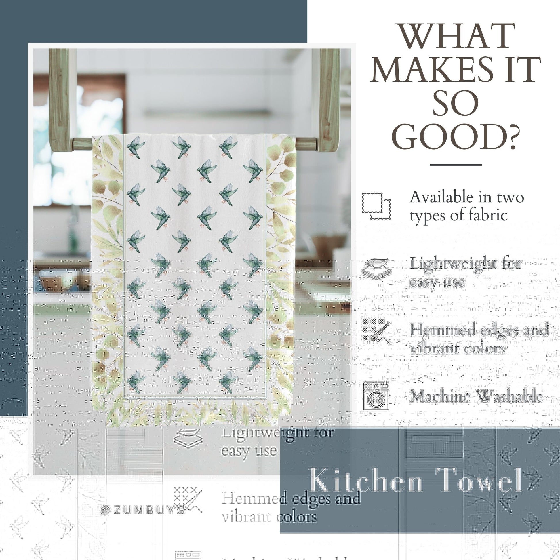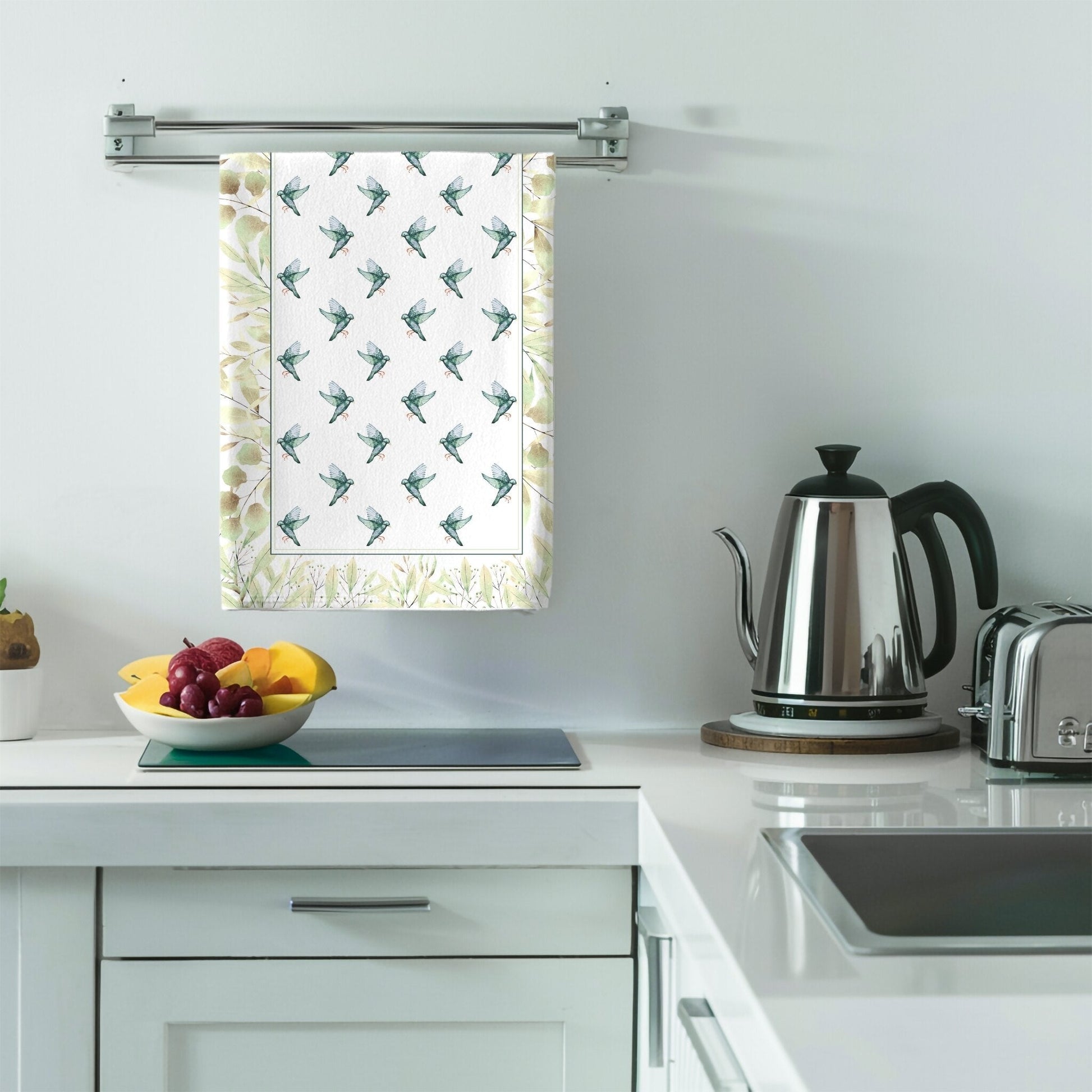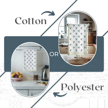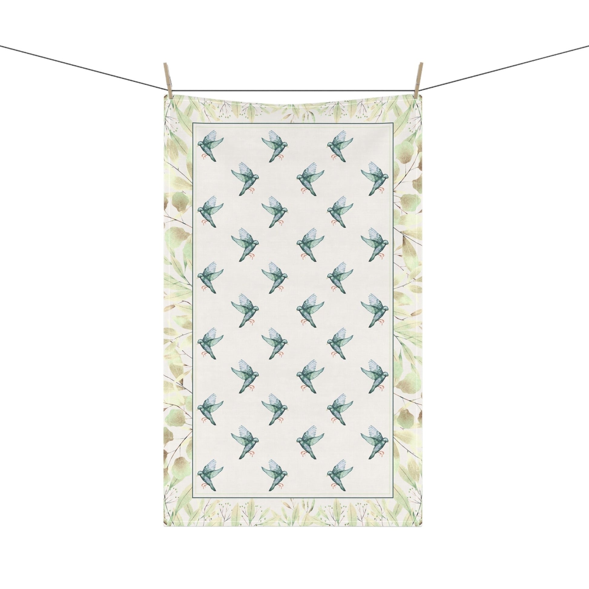 Bring charm and tranquility to your kitchen with the Wings of Peace Tea Towel. Featuring a delicate leaf border and a delightful green bird pattern on a crisp white background, this modern farmhouse kitchen towel perfectly blends beauty and practicality. At 18x30 inches, its generous size easily tackles kitchen tasks—whether drying dishes, lining baskets, or serving as a decorative accent for your spring home décor. Crafted from your choice of absorbent cotton twill or durable polyester, this tea towel is lightweight, hemmed for lasting finish, and machine washable for easy care. The colors stay vibrant wash after wash, making it an enduring addition to your kitchen or a thoughtful housewarming or hostess gift—especially for bird lovers. Elevate everyday chores and adorn your home with nature-inspired style. The Wings of Peace Tea Towel is more than just a kitchen essential—it's a statement piece that brings freshness, function, and a touch of peace to any space.